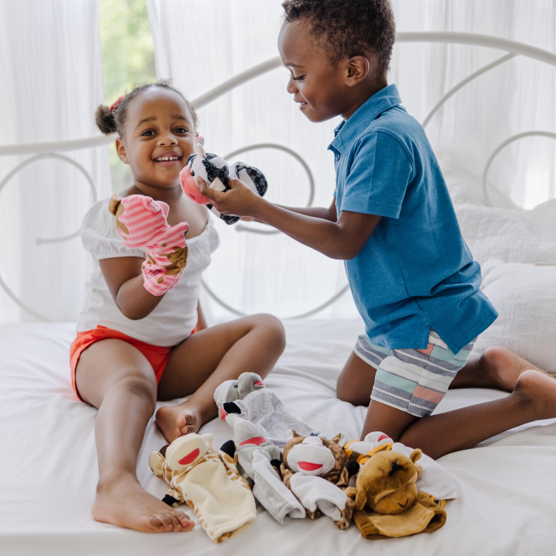 Melissa & Doug Animal Hand Puppets (Set of 2, 4 Animals in Each) - Zoo Friends and Farm Friends