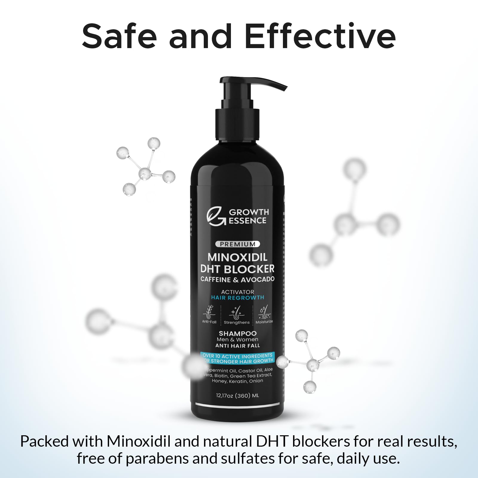 Minoxidil & Biotin Hair Growth Shampoo โ€“ Caffeine, Castor Oil & Onion Enriched DHT Blocker for Thicker, Stronger, Healthier Hair for Men & Women
