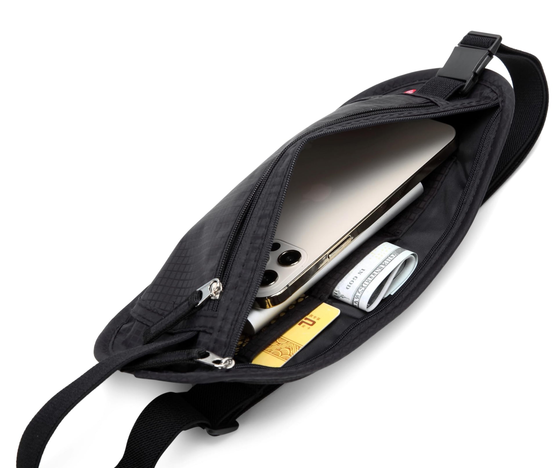 Money Belt - Passport Holder Security Hidden Slim Travel Wallet Fanny Pack with RFID Blocking - Black
