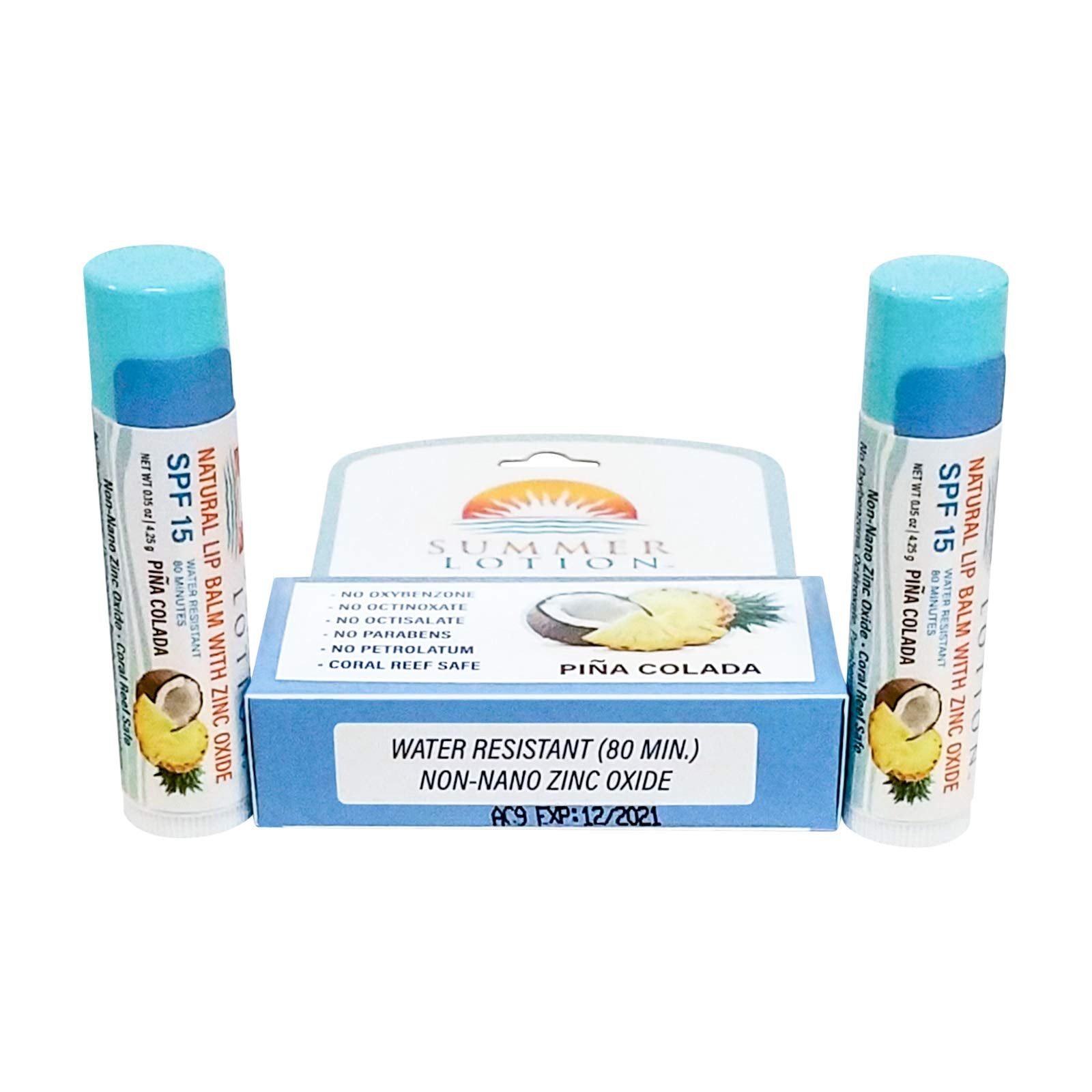 Summer Lotion Natural Lip Balm SPF 15 with Zinc Oxide, Water-Resistant Sunblock Chapstick, 2-Pack Pina Colada Flavor