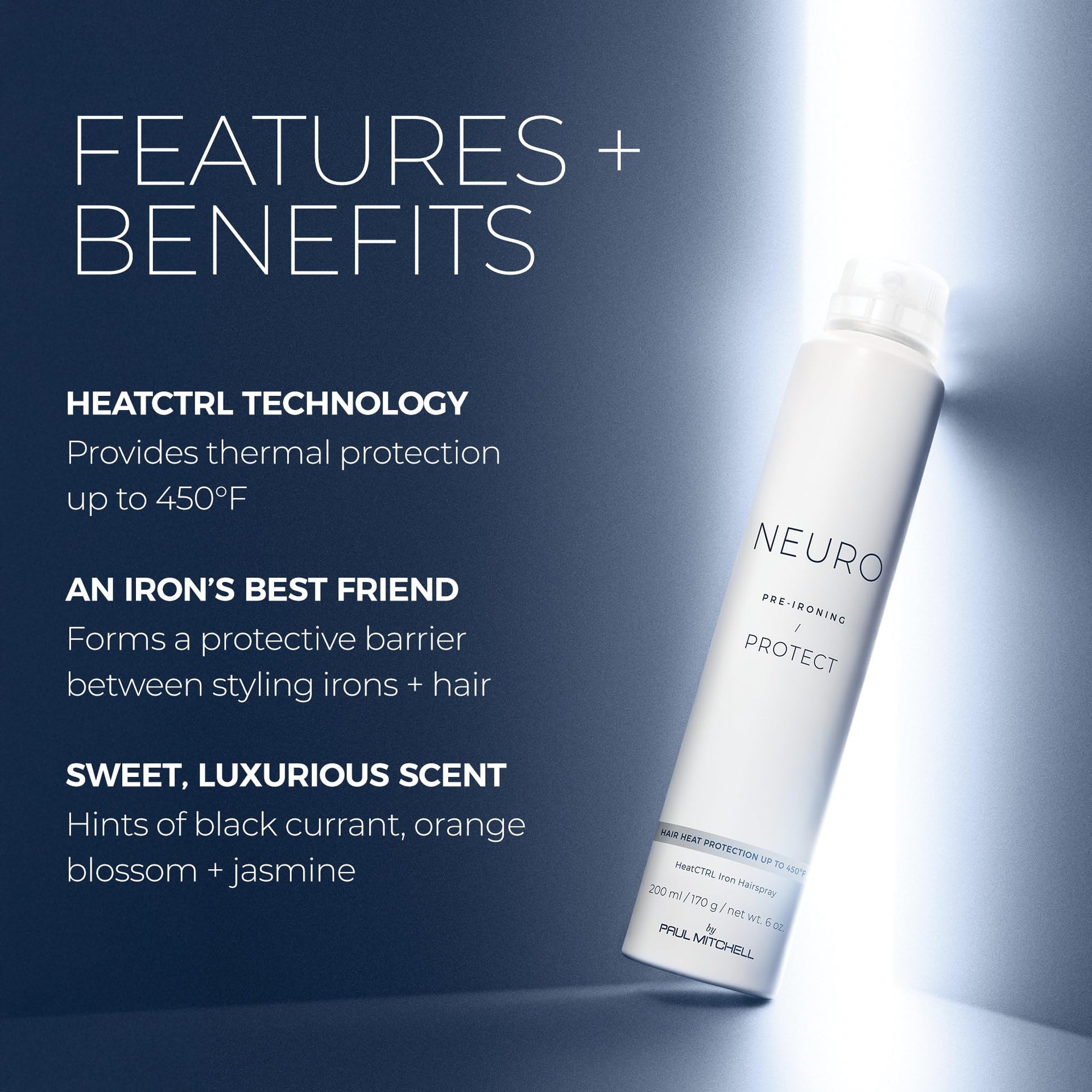 An iron's best friend, Neuro Protect HeatCTRL Iron Hairspray delivers shine and hold to lock in luminous looks. It forms a protective barrier between hair and tools with HeatCTRL Technology—our exclusive heat-activated blend that smooths hair, resists humidity and blocks out frizz.