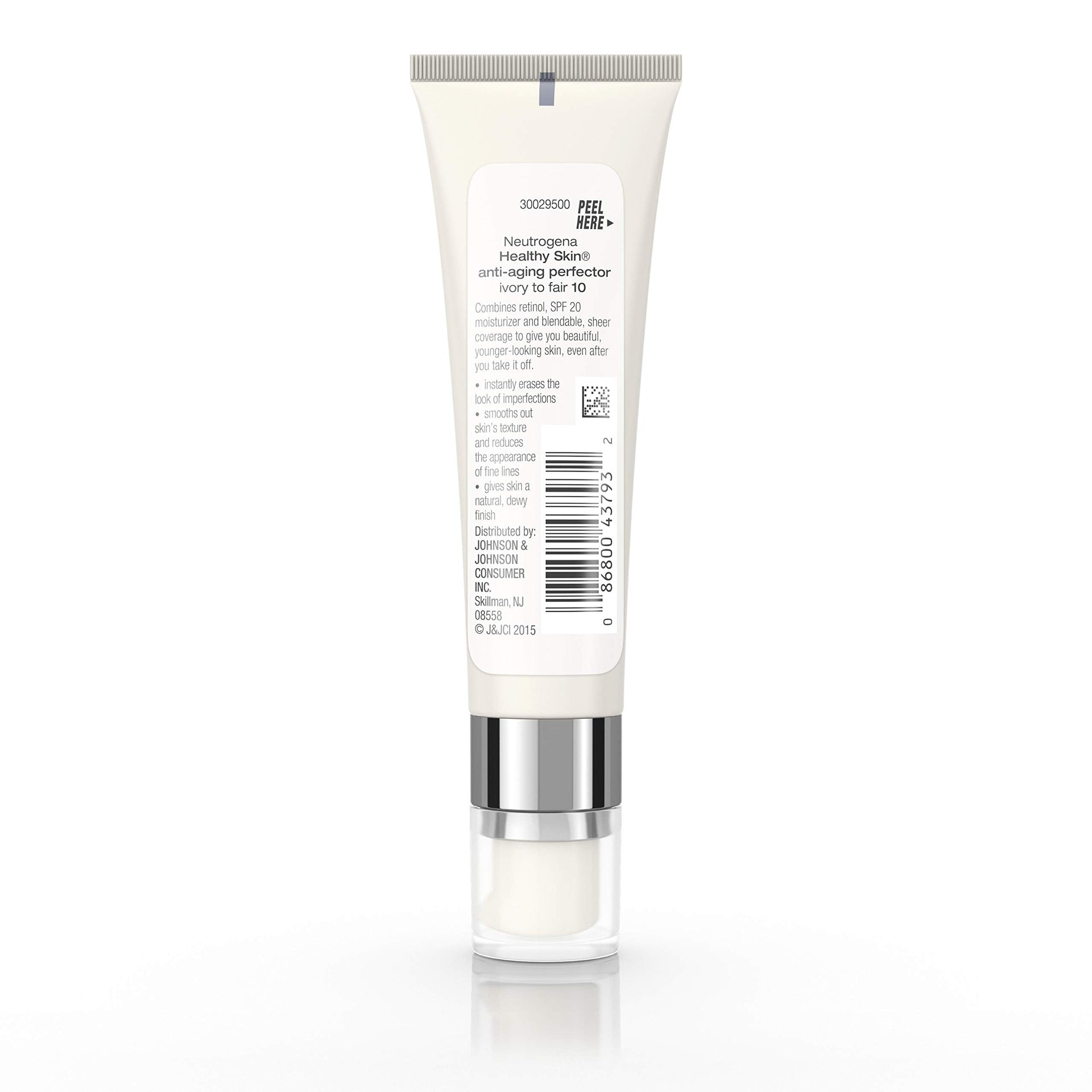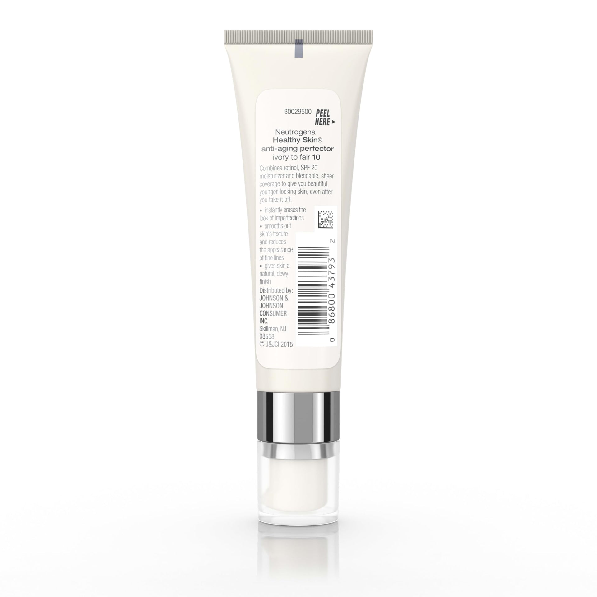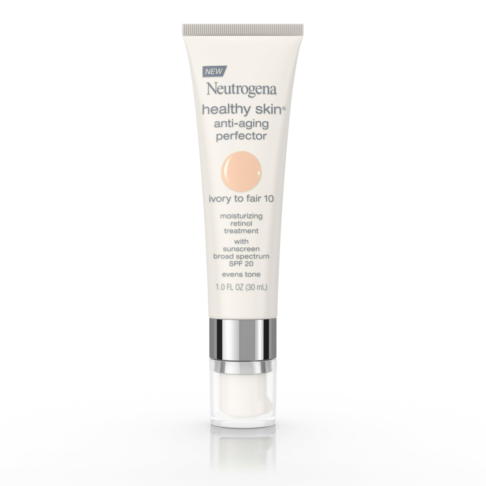 Details: Use Neutrogena Healthy Skin Anti-Aging Perfector Tinted Facial Moisturizer with SPF 20 sunscreen to help reduce the appearance of fine lines. This all-in-one daily moisturizer combines the anti-aging properties of retinol with an SPF 20 moisturizer to offer blendable sheer coverage that helps even tone and smooth skin's texture while protecting against skin-damaging sunrays. This tinted moisturizer is enriched with clinically proven retinol treatment as well as vitamins and antioxidants to fight the appearance of wrinkles even after you take it off. Neutrogena Healthy Skin Anti-Aging Perfector SPF 20 works across skin tones for a natural, dewy finish with sheer coverage.