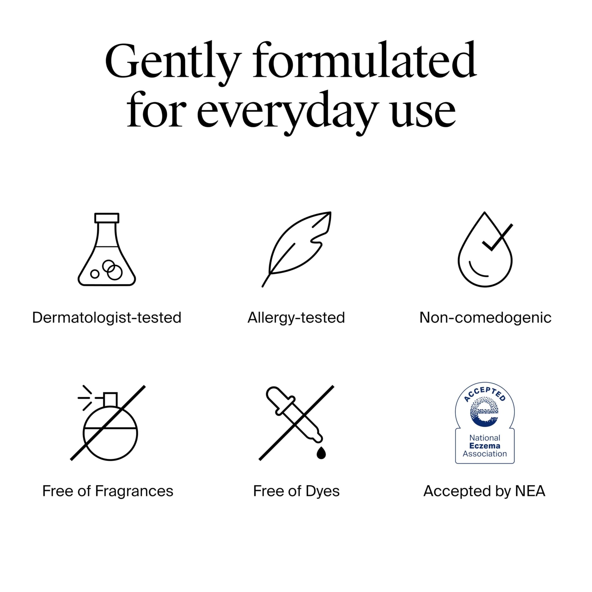 - The daily facial cleanser transforms into a silky foaming lather to remove makeup, dirt, oil & impurities from skin while leaving it feeling soft & supple. This lightweight & gentle face wash is ideal for cleansing dry, acne-prone & sensitive skin