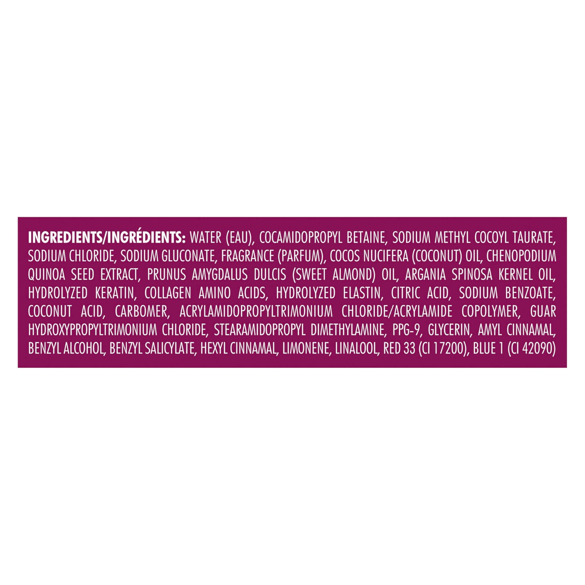 Details: Nexxus Color Assure Shampoo has been specially formulated to help extend the color vibrancy of color-treated hair. Using Nexxus' exclusive PROTEINFUSION blend, this sulfate-free shampoo cleanses color-treated hair and helps replenish nutrients to help enhance color vibrancy. For best use, apply shampoo to wet hair, massage into a rich lather, and rinse thoroughly. Follow with Nexxus Color Assure Conditioner for optimal results. Nexxus scientists used Proteomics studies to examine hair damage at the molecular level and found that the main cause of color loss and dullness is hair coloration. With this knowledge in mind, our scientists developed a one-of-a-kind PROTEINFUSION blend with Elastin Protein and Quinoa, along with other ingredients, to create Color Assure formulas that result in long-lasting color vibrancy — for up to 40 washes! Our Color Assure range includes new formats that create an optimal regimen for color care. The range includes products like a shampoo, conditioner, cleansing conditioner, purple shampoo for blonde and silver shades, and a deep treatment masque. A leader in salon-quality hair products, Nexxus uses learnings from science and nature. We know that hair is made of almost 90% proteins, which is why we use advanced scientific methods to identify the protein needs of each hair type and create customized formulas with proteins to bring your hair back to life.