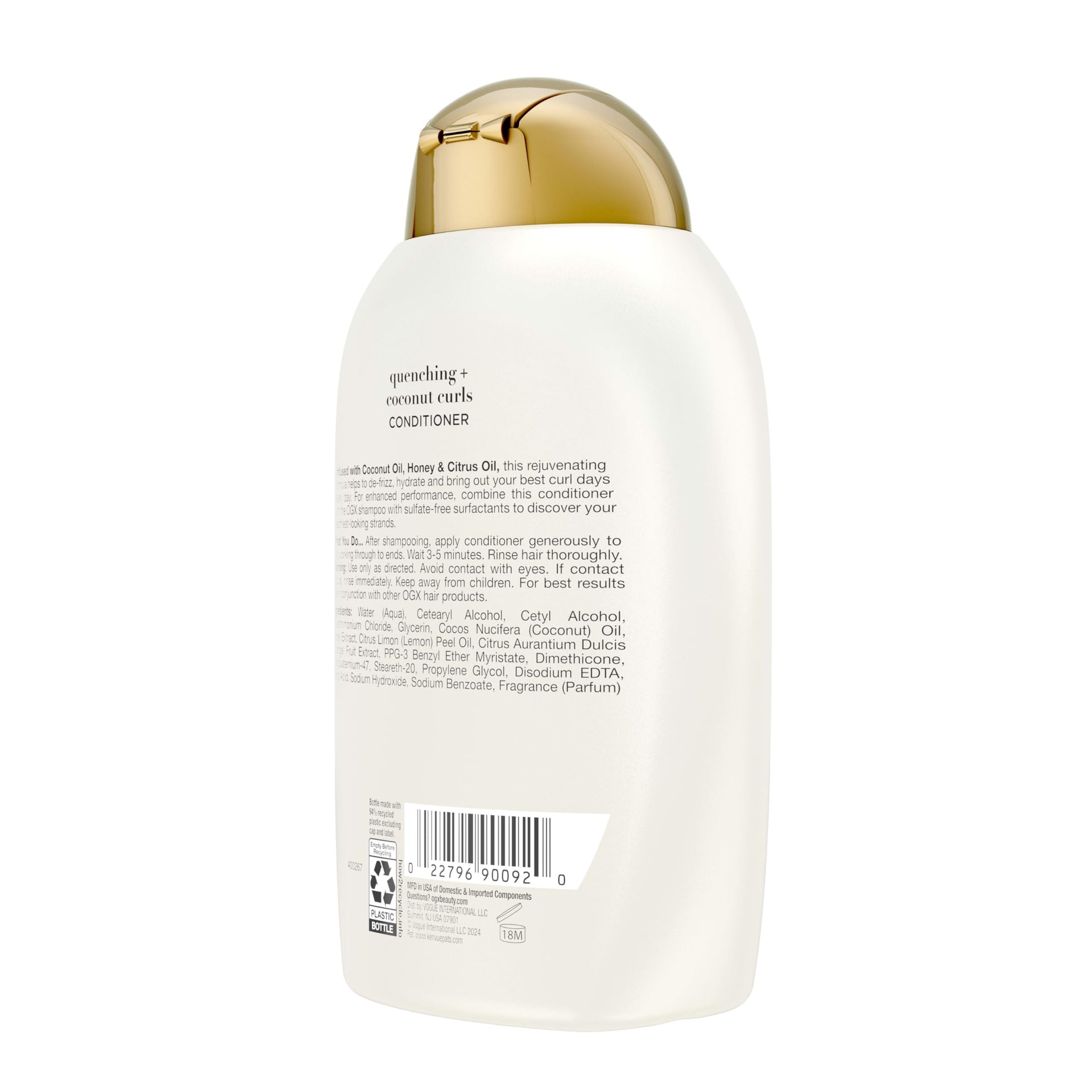 OGX Quenching + Coconut Curls Curl-Defining Conditioner, 13oz | Nourishing Coconut, Citrus Oil & Honey Formula | Paraben & Sulfate-Free