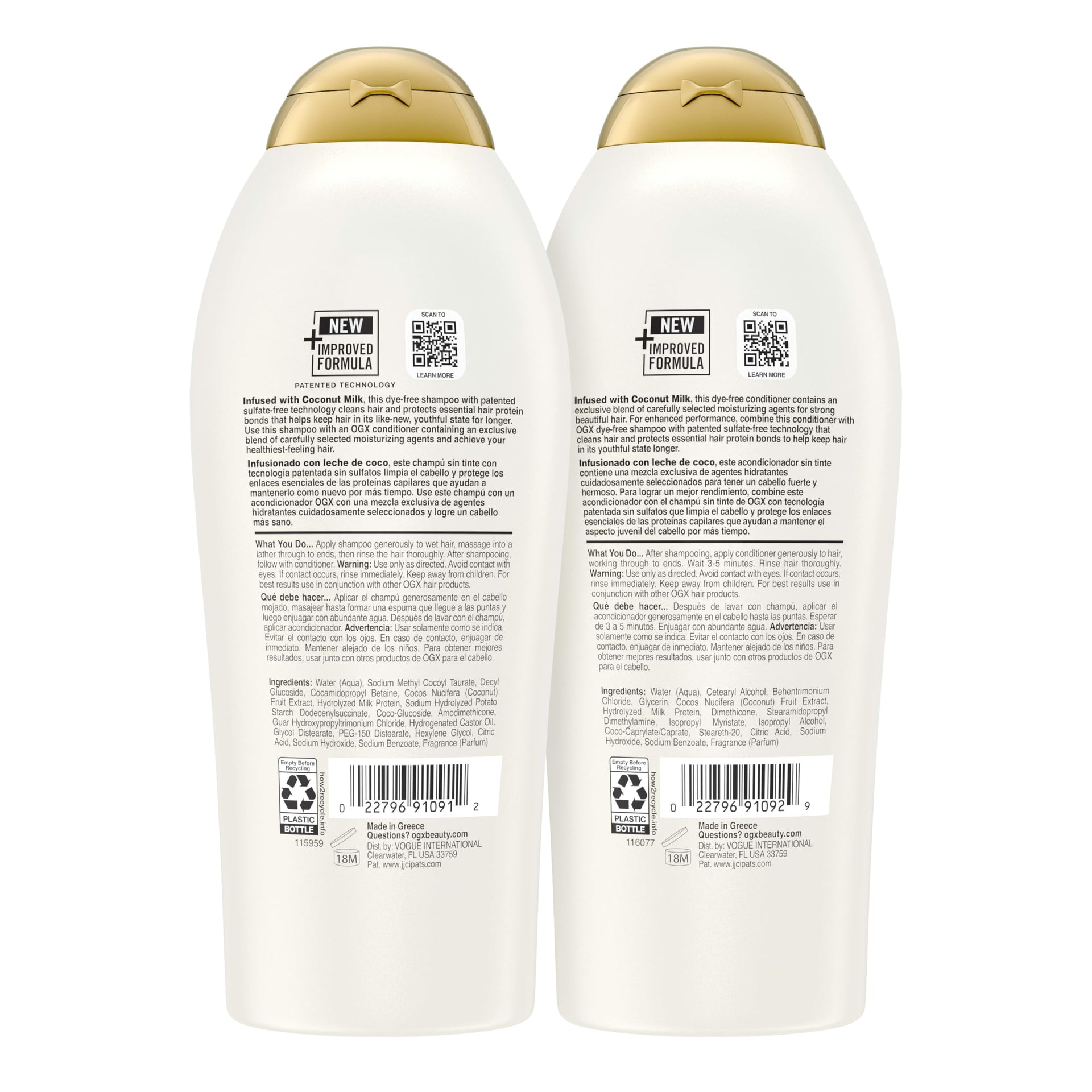 - Shampoo and Conditioner Set: Includes one 25.4 Fl Oz bottle of OGX Nourishing plus Coconut Milk Shampoo and one 25.4 Fl Oz bottle of OGX Nourishing plus Coconut Milk Conditioner; everything you need for nourished, hydrated hair