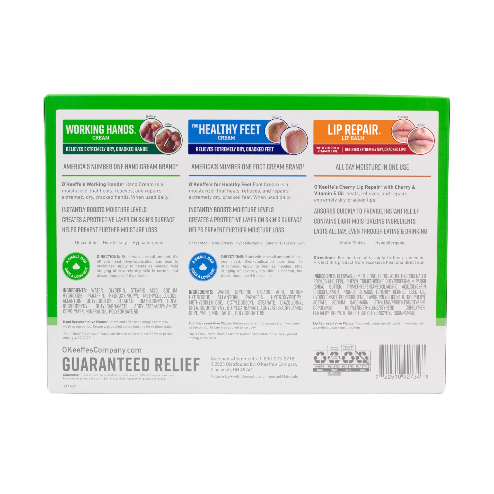 Details: For over 25 years, O'Keeffe's hardworking skincare products have been providing guaranteed relief. This gift set contains three essential products: