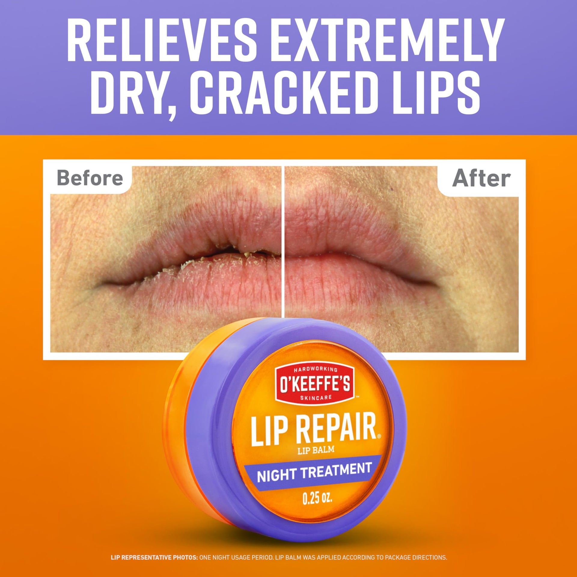 O'Keeffe's Lip Repair Night Treatment Lip Balm for Dry, Cracked Lips - 0.25 Ounce Jar (1 Pack) - Moisturizer Extremely Cracked, Dry Lips