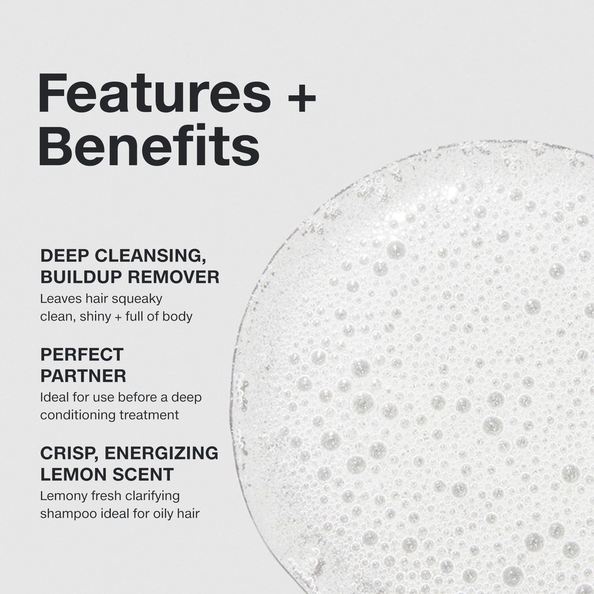 - Lemony fresh clarifying shampoo deeply cleanses hair and removes dulling buildup