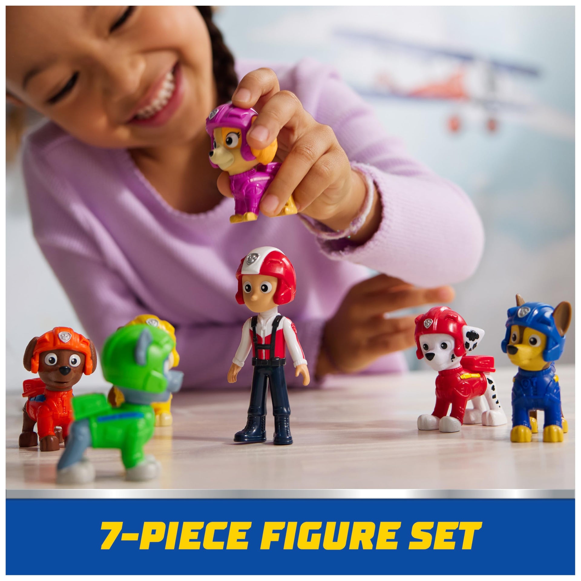 Details: Create your own PAW Patrol: Air Rescue adventures with this awesome PAW Patrol Collectible Figure Gift Pack! This PAW Patrol toy figures set includes 7 collectible toy figures, Chase, Ryder, Marshall, Rocky, Rubble, Zuma, and Skye, decked out in their all-new Air Rescue flight jackets & helmets, so that each figure looks just like they do in the show! Each pup is over 2-inches tall, with movable heads, while Ryder stands 3.5-inches tall and has a poseable head & arms, making them a must-have for PAW Patrol toy collectors! PAW Patrol preschool toys & toddler learning toys are gifts for kids who are fans of the show, fostering imaginative pretend play and enhanced fine motor skills. Relive your favorite moments from PAW Patrol seasons, like the Mighty Pups and PAW Patrol Movie, then create your own adventures with the PAW Patrol pups and their respective toy cars (each sold separately). Elevate the excitement with the complete Action Pups & Air Rescue team sets, which include PAW Patrol vehicles, action figures & toddler toys, for endless hours of PAWsome, series-inspired adventures!