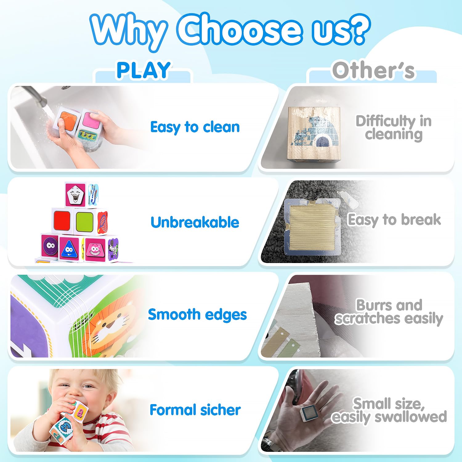 PLAY ABC Toddler Building Blocks, 28-Piece Alphabet & Number Stacking Set, Montessori Educational Sensory Toys for Ages 1-3