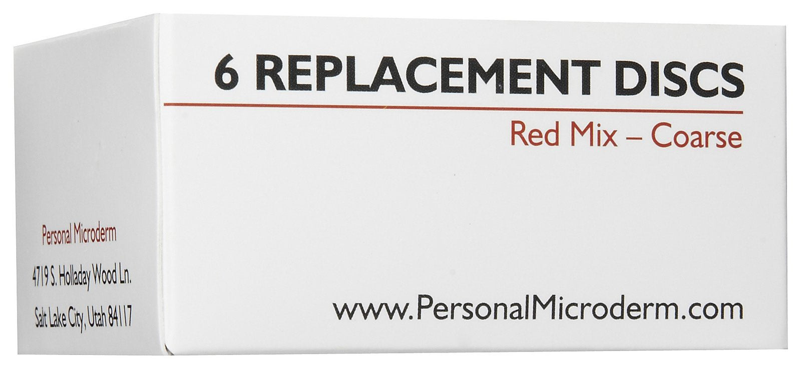 Details: Personal microderm red replacement discs 6 pack (2 large, 4 small) and 1 black replacement filter. Coarse grit aluminum oxide coated tip.