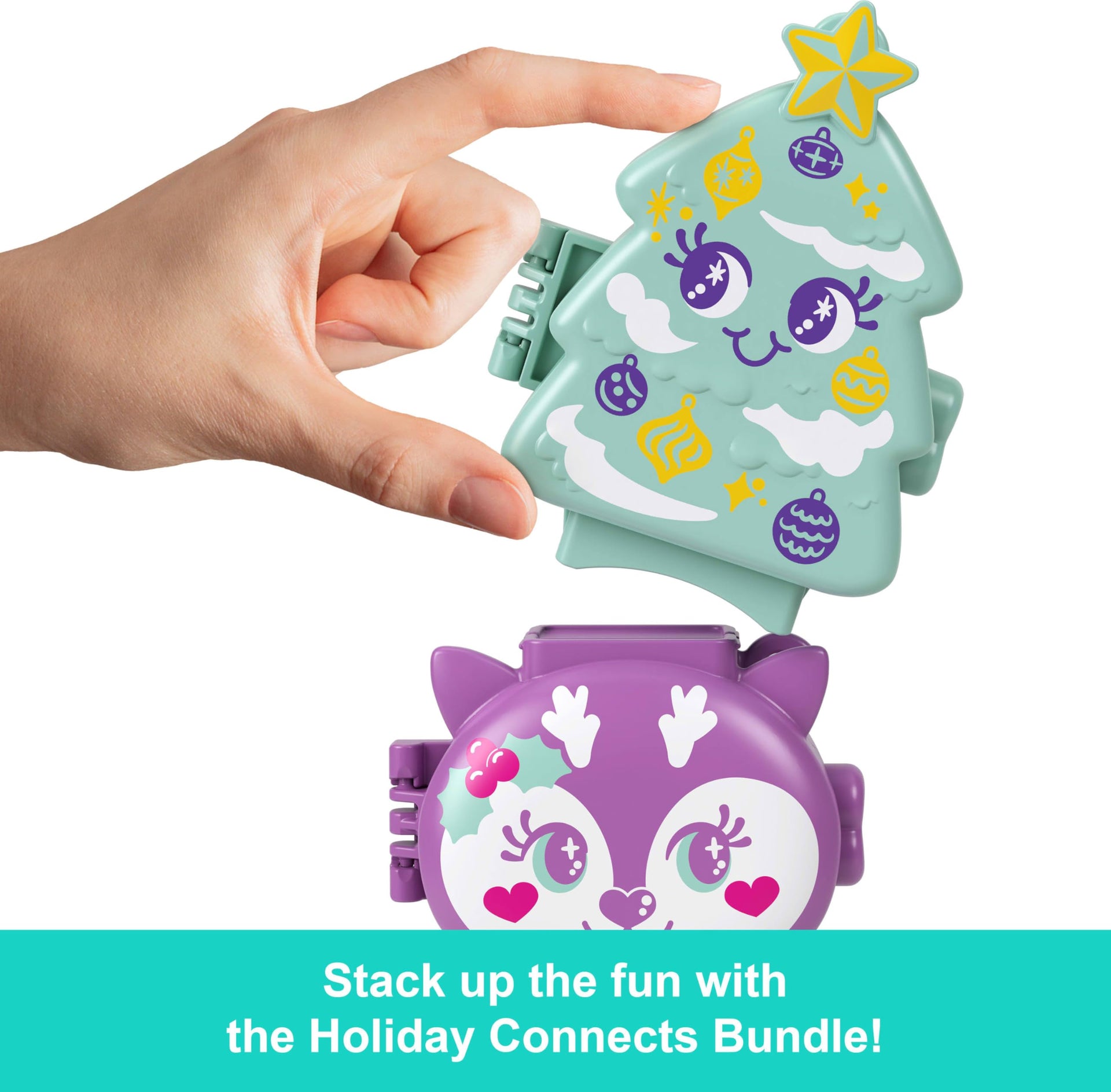 - An adorable reindeer and Christmas tree decorate the outside of these Polly Pocket Holiday Connects compacts that open to reveal tiny worlds filled with big adventures!