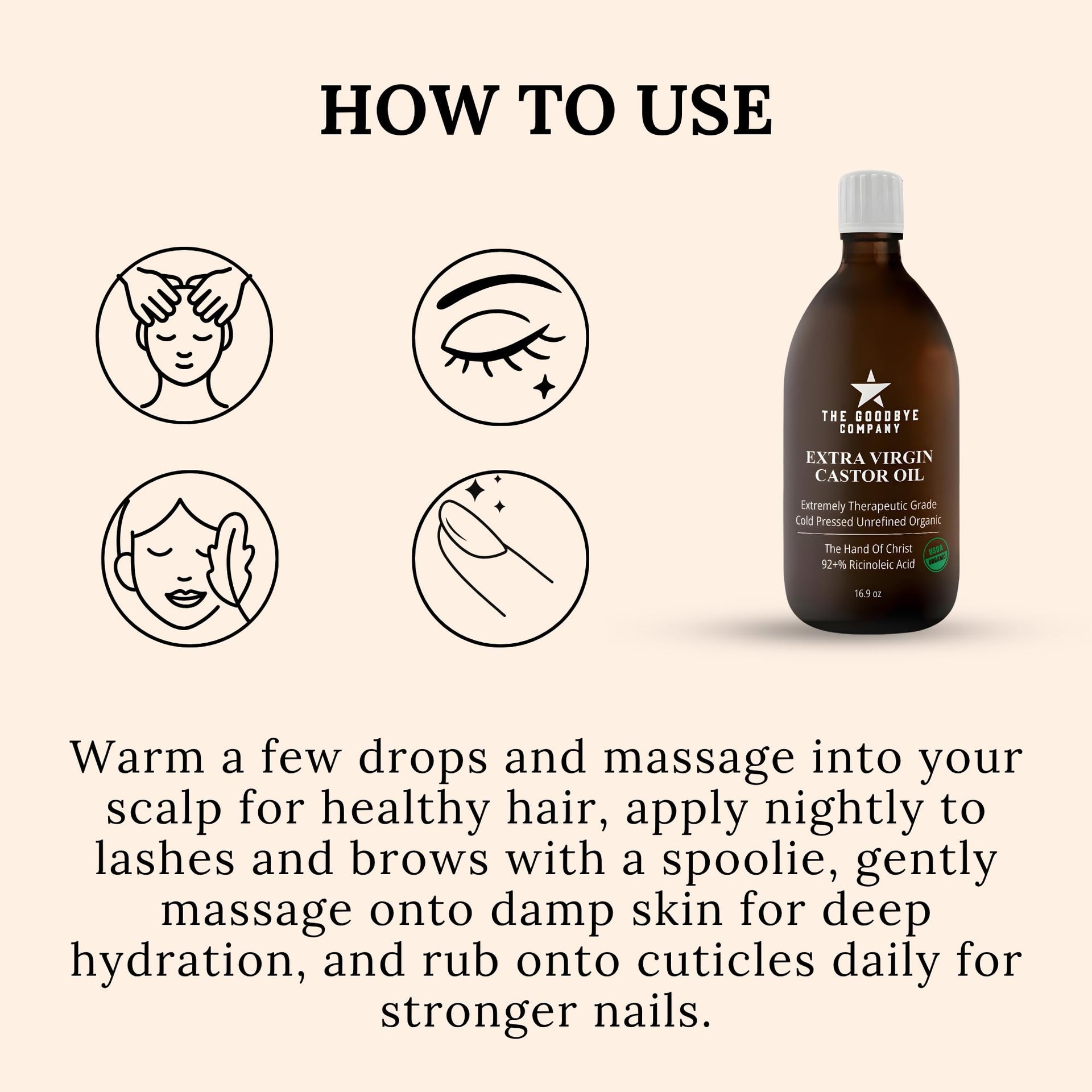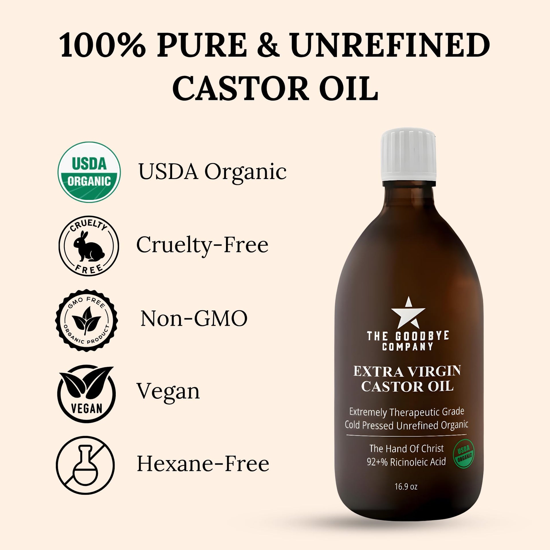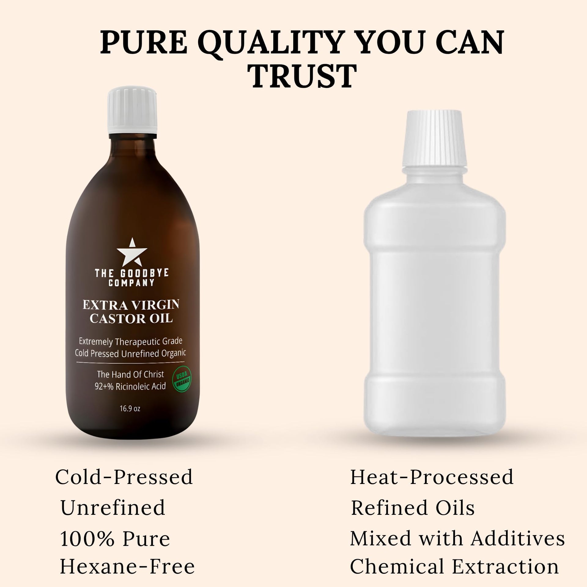 Premium Organic Cold-Pressed Castor Oil 16.9 oz – Extra Virgin, Hexane-Free, Small Batch, Ethically Sourced for Hair, Skin, Lashes & Brows