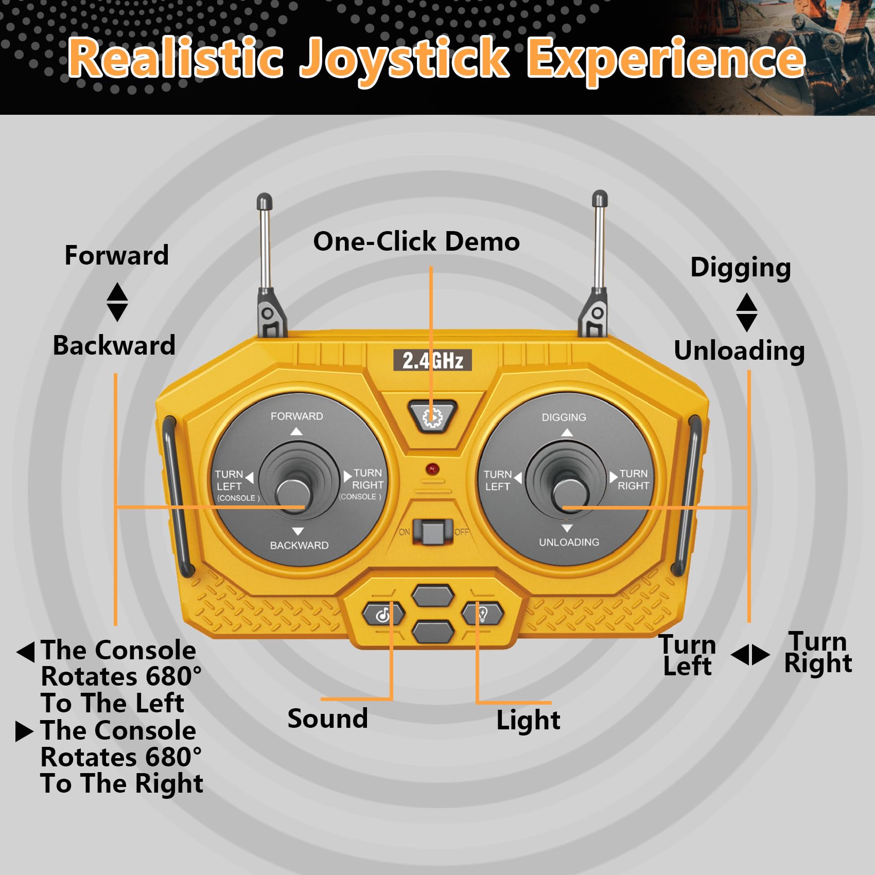 PREPOP RC Excavator Toy for Kids 6-12 – Remote Control Construction Truck with Metal Shovel, Lights & Sounds, Birthday Gift for Boys 4-11