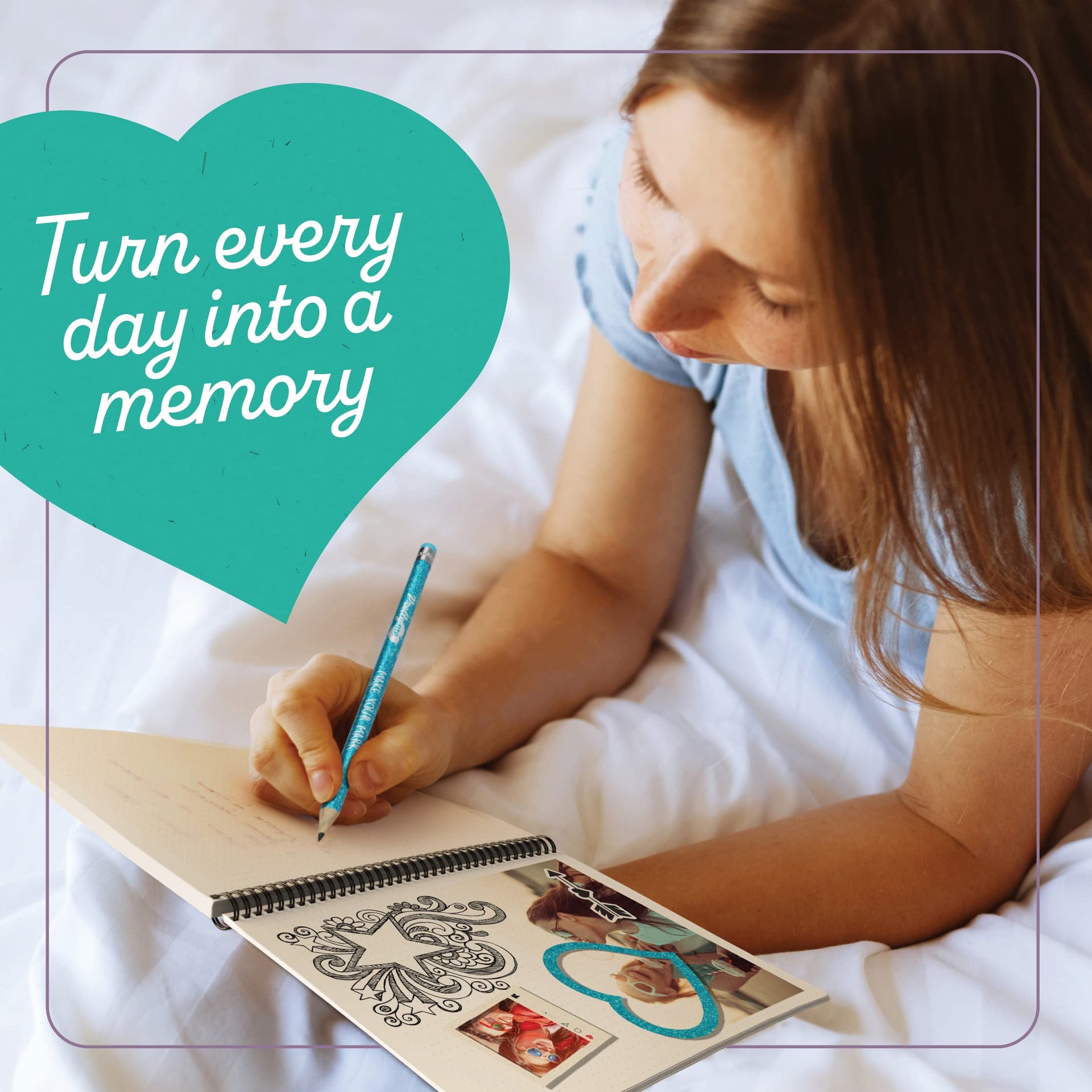 - Let Your Creativity Shine! With trendy patterned papers, fun chipboard frames, and sparkling glitter tape, you can uniquely decorate all 70 pages. The possibilities are endless! Complete it with shapes, borders, bookmarks, paper clips, and, of course, the charm.