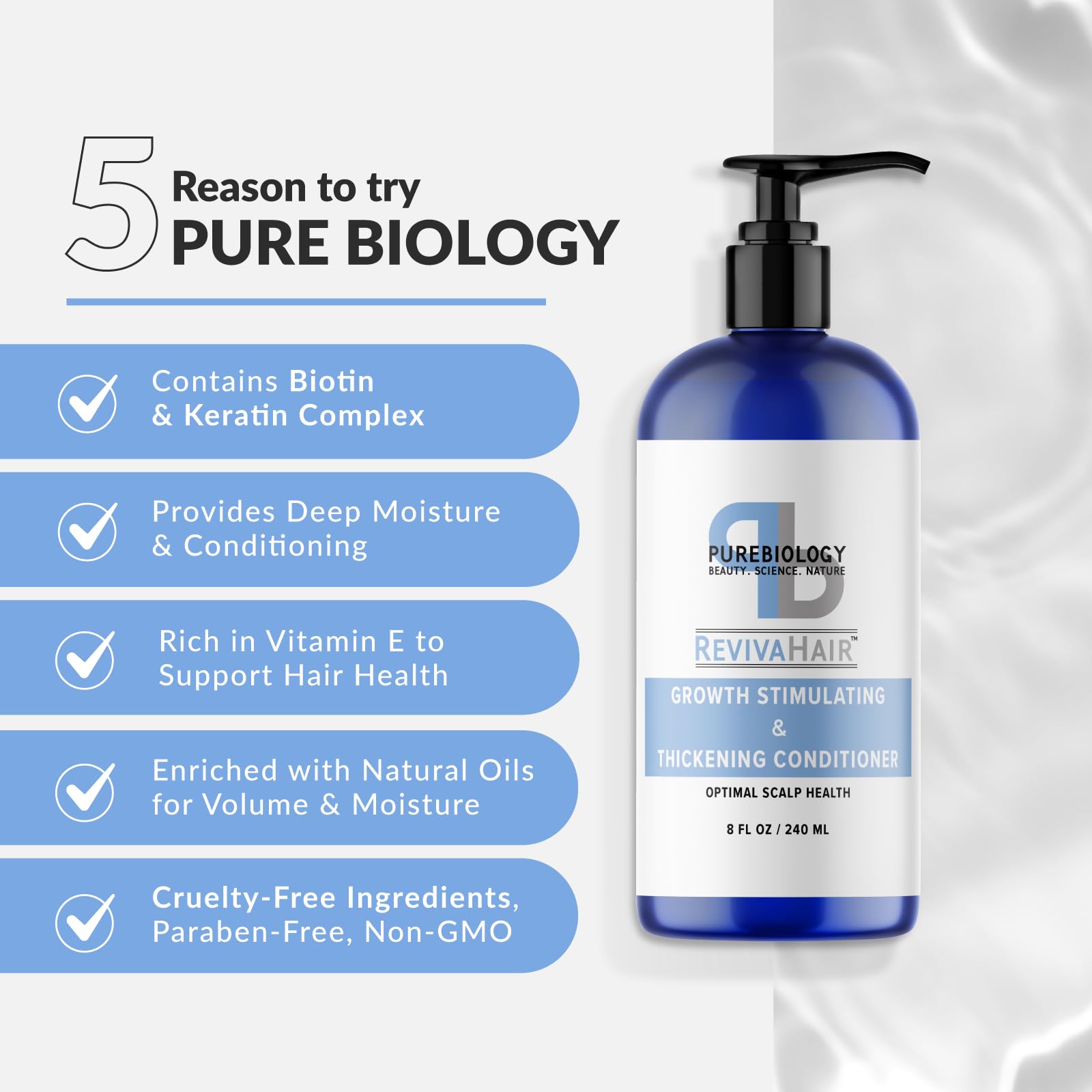 - Pure Beauty - At Pure Biology we know you deserve the best which is why our volume hair products are made in the USA without cruelty or parabens and with quality oils for great hair from root to tip