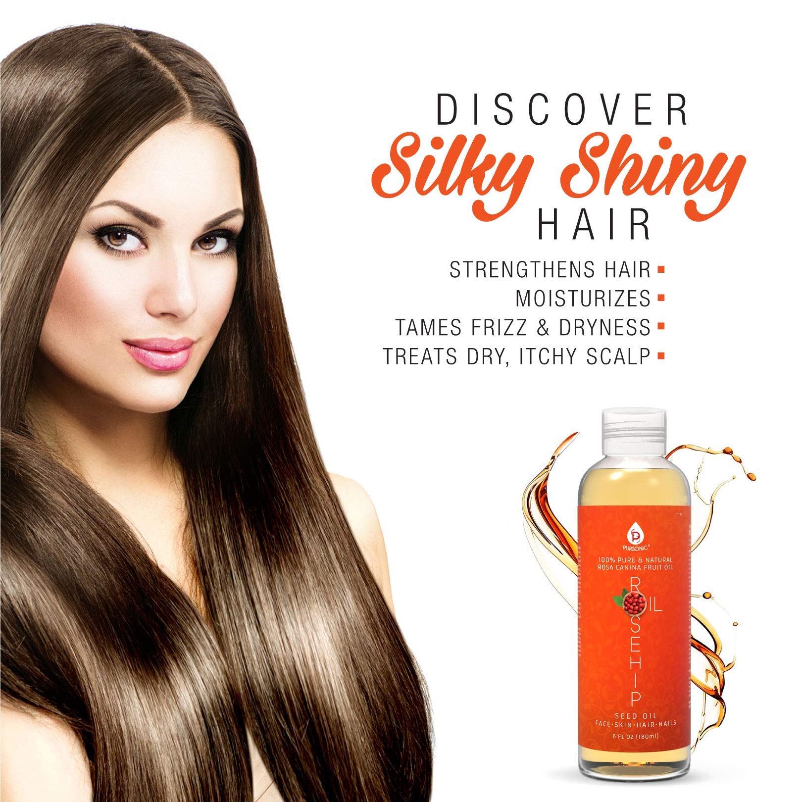 Pursonic 100% Pure Cold-Pressed Rosehip Oil, 6 fl. oz – Hydrating Facial, Hair & Skin Oil for Anti-Aging, Brightening, Scars & Stretch Marks
