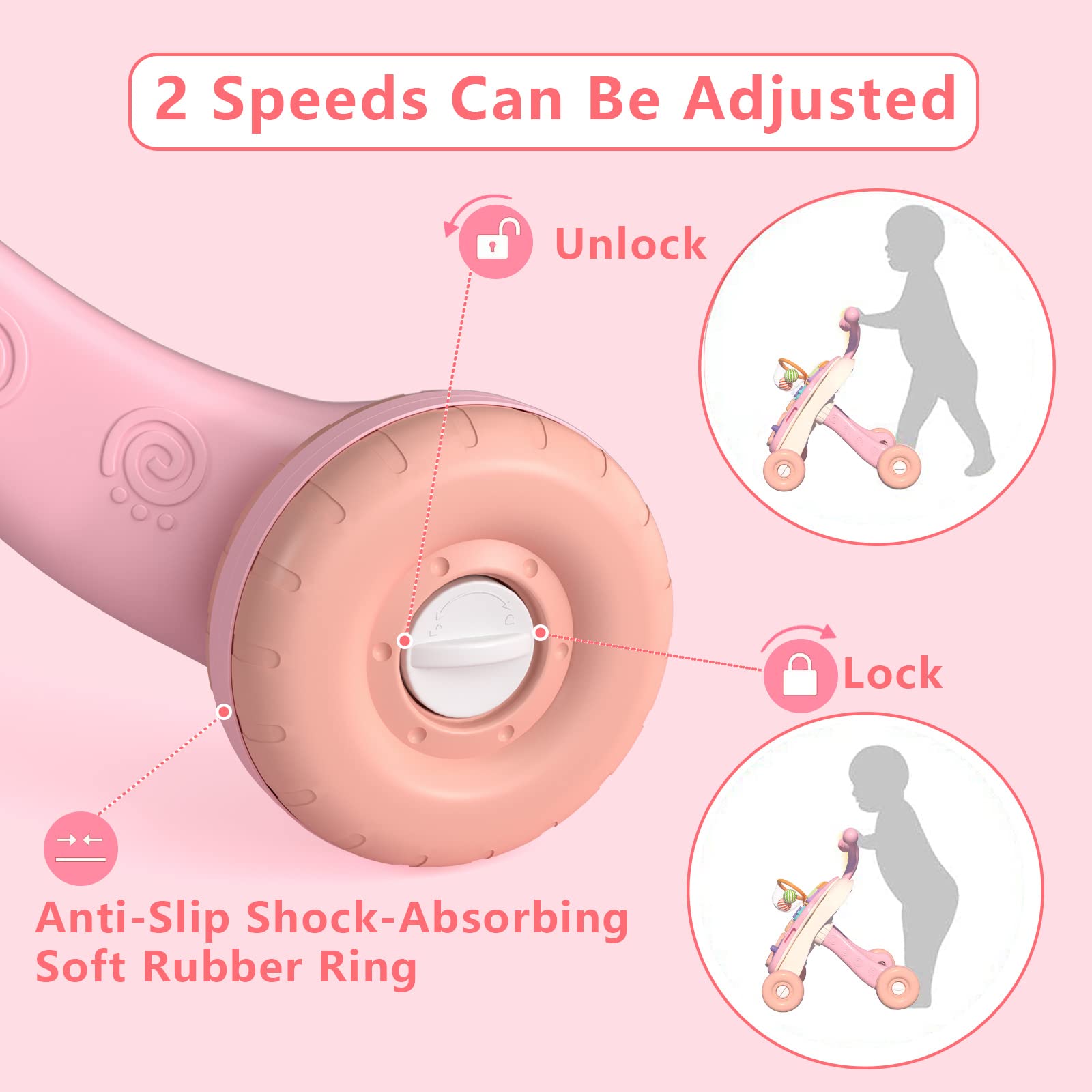 QDRAGON 3-in-1 Baby Walker & Activity Center for Girls – Sit-to-Stand Learning Toy with Music Panel, Educational Push Walker for Toddlers 12+ Months, Pink