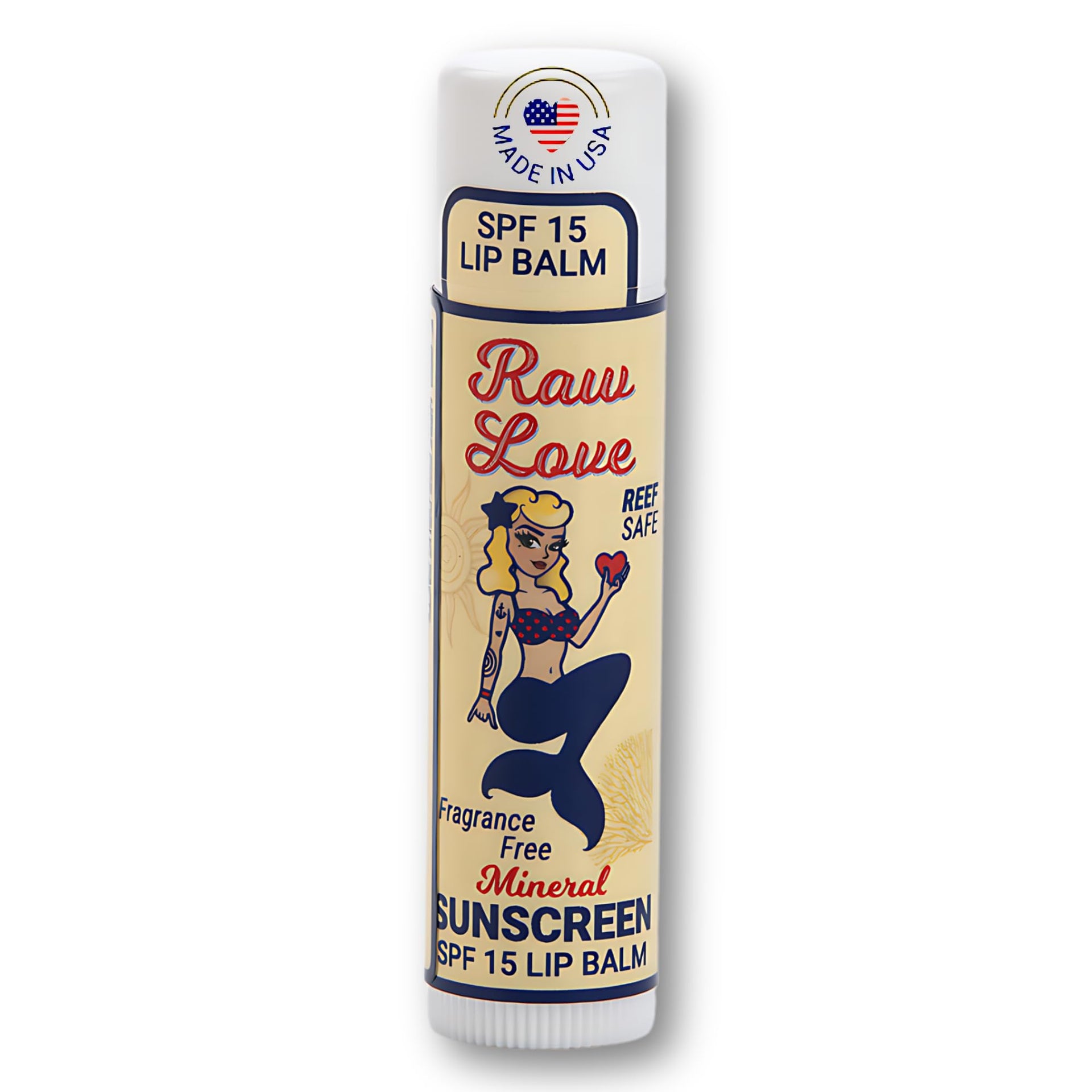 Raw Love SPF 15 Mineral Sunscreen Lip Balm - Reef Safe, Fragrance-Free, Broad Spectrum with Non-Nano Zinc Oxide, Made in USA 0.15 oz
