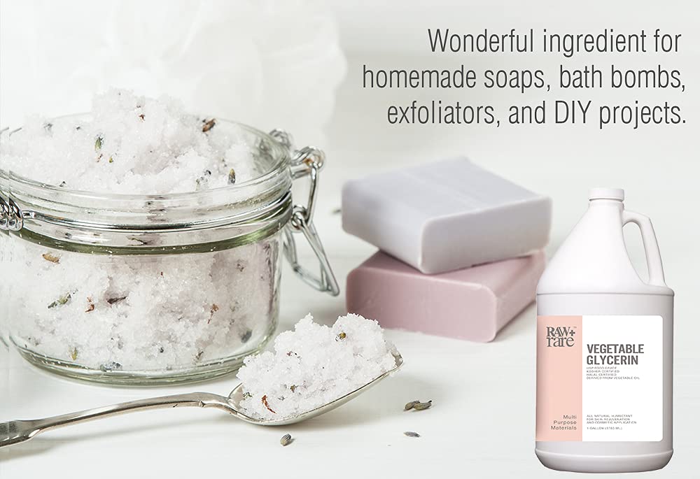 Raw Plus Rare Natural Glycerin 128 fl oz – Bulk Gallon, USP Food & Cosmetic Grade, Hair & Skin Care, Soap Making, Kosher & Halal