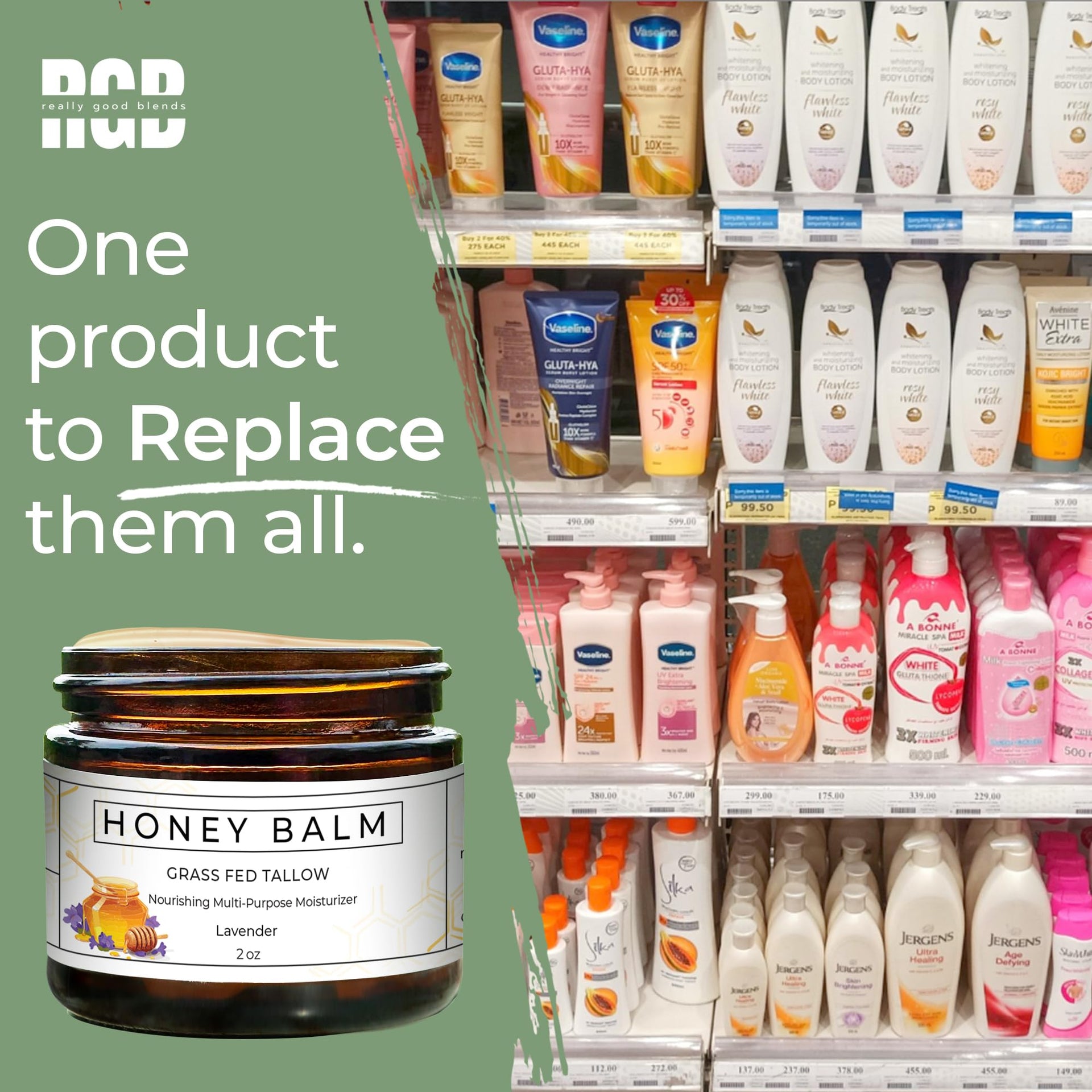 Really Good Blends Tallow & Honey Balm, Organic Body Butter with Grass-Fed Beef Tallow, Soothing All-Natural Moisturizer 2oz Lavender