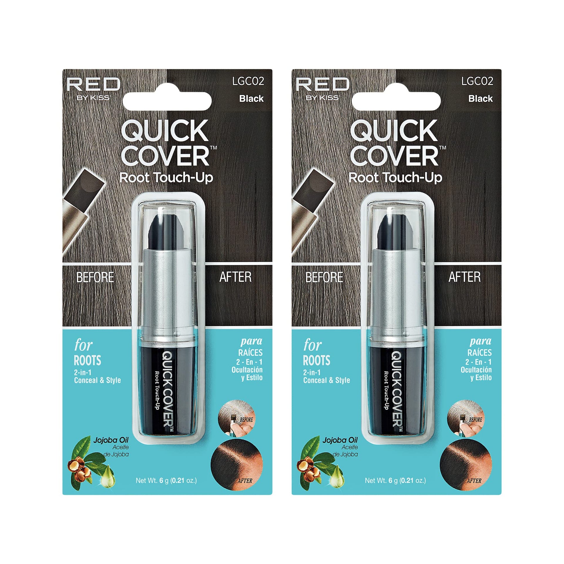 RED by Kiss Quick Cover Root Touch Up Stick, Water-Resistant Gray Hair Concealer for Roots & Beard, Long-Lasting Easy Application, 2 Pack Black