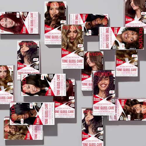Revlon ColorSilk Tone + Gloss + Care Demi-Permanent Hair Dye Kit with Leave-In Serum, 2X Shine & 4X Strength, Shade 1 Black, 4.5 fl oz