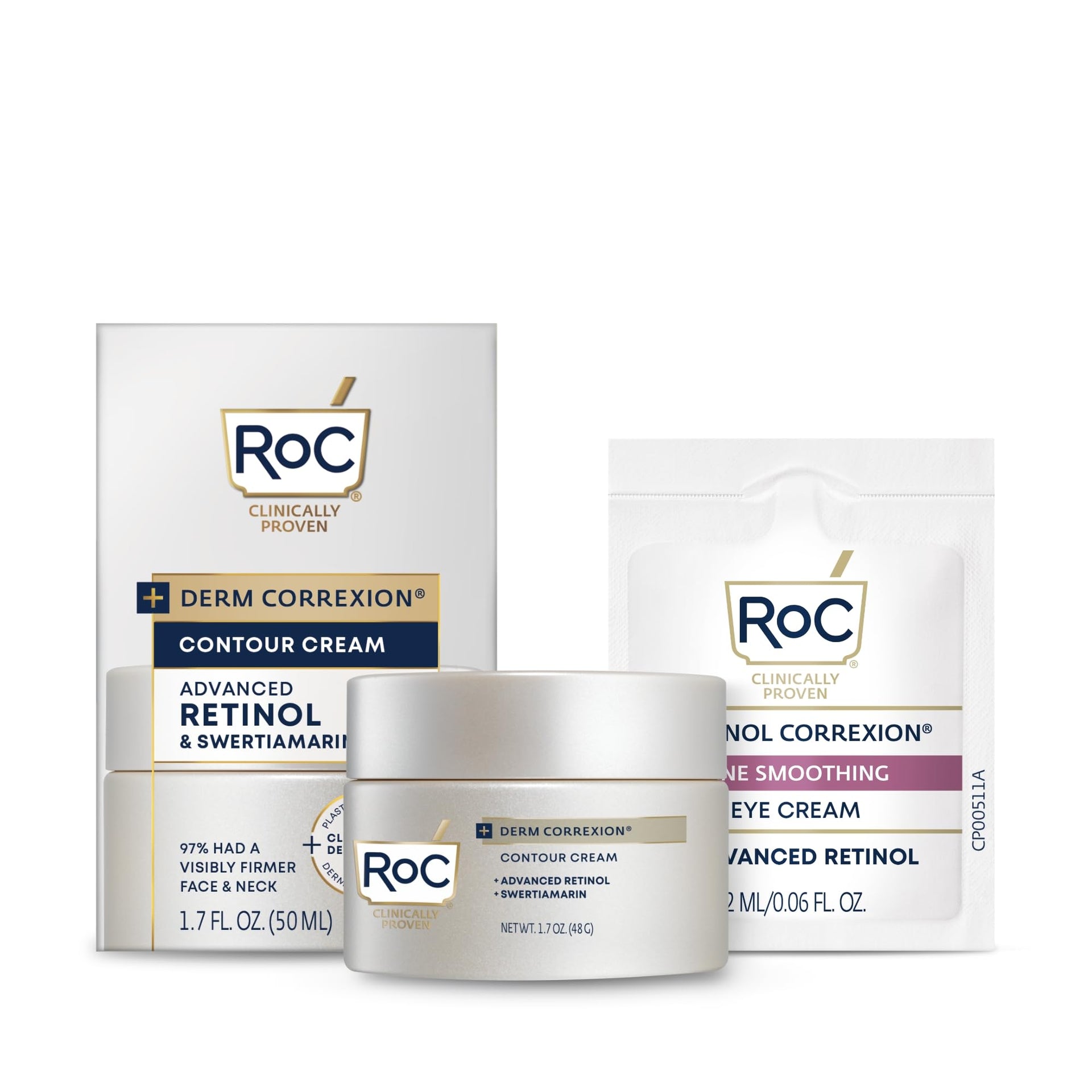 RoC Derm Correxion Neck Cream with Retinol & Hyaluronic Acid - Tightens, Lifts, and Firms Neck & Face + Bonus RoC Retinol Eye Cream Packette, 1.7 oz