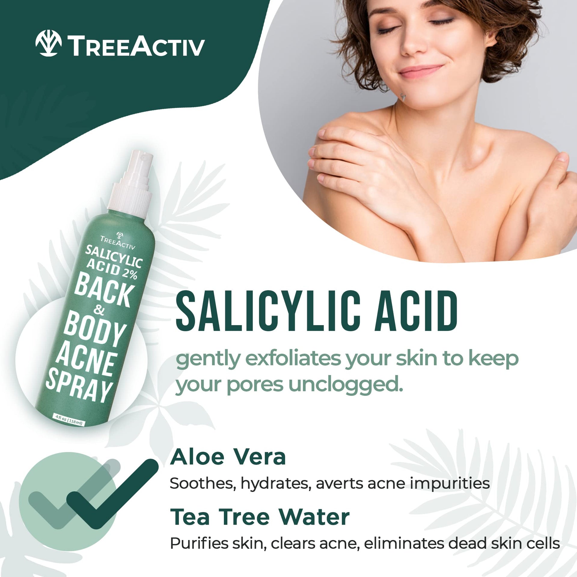 Salicylic Acid Back & Body Acne Spray for Men & Women, Tea Tree Oil Mist, Fast-Drying Body Acne Treatment, 4 fl oz, 2-Pack