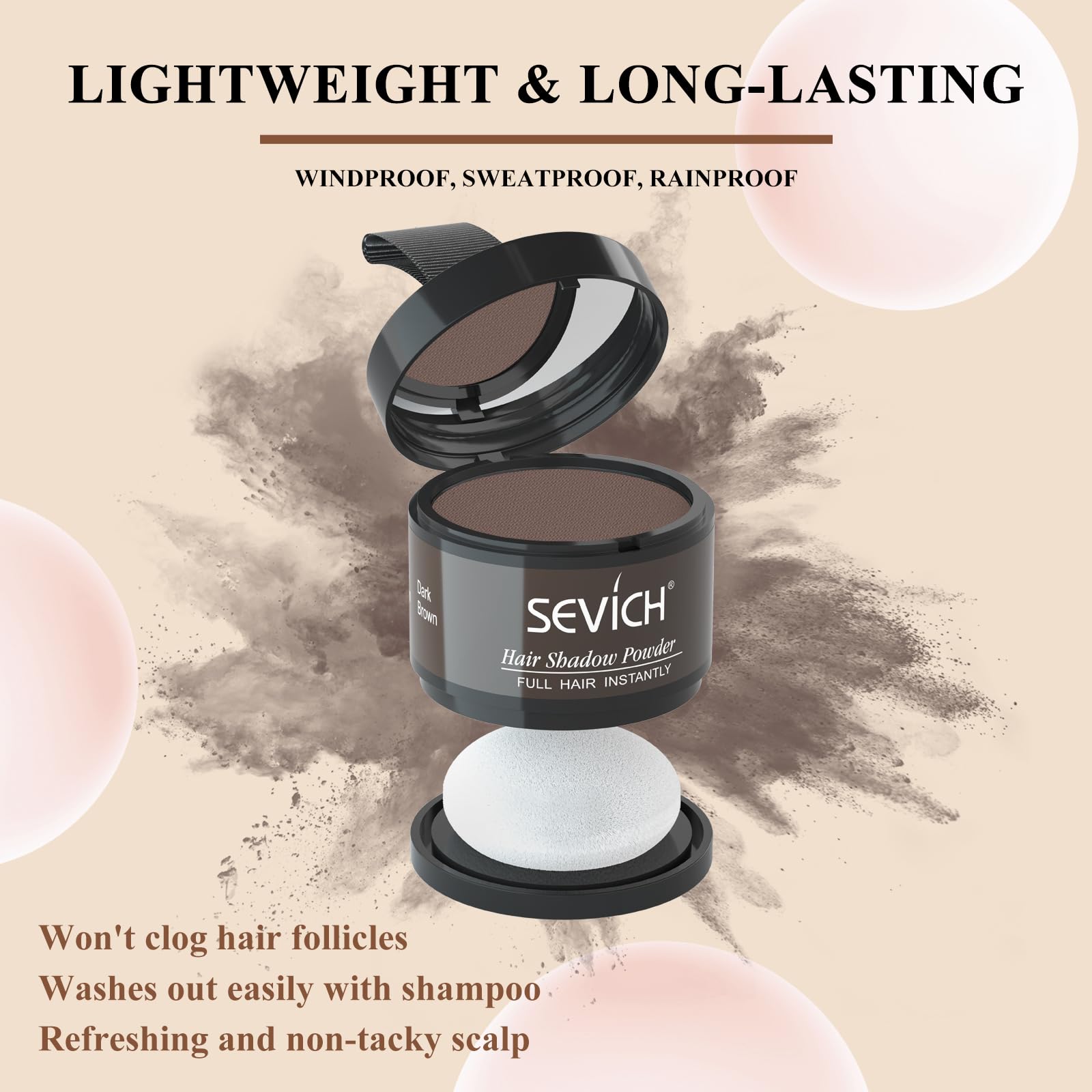 SEVICH Hairline Shadow Powder – Instant Grey Root Concealer for Hairline, Beard & Eyebrows | Covers Thinning Areas, Wind & Sweatproof, Dark Brown