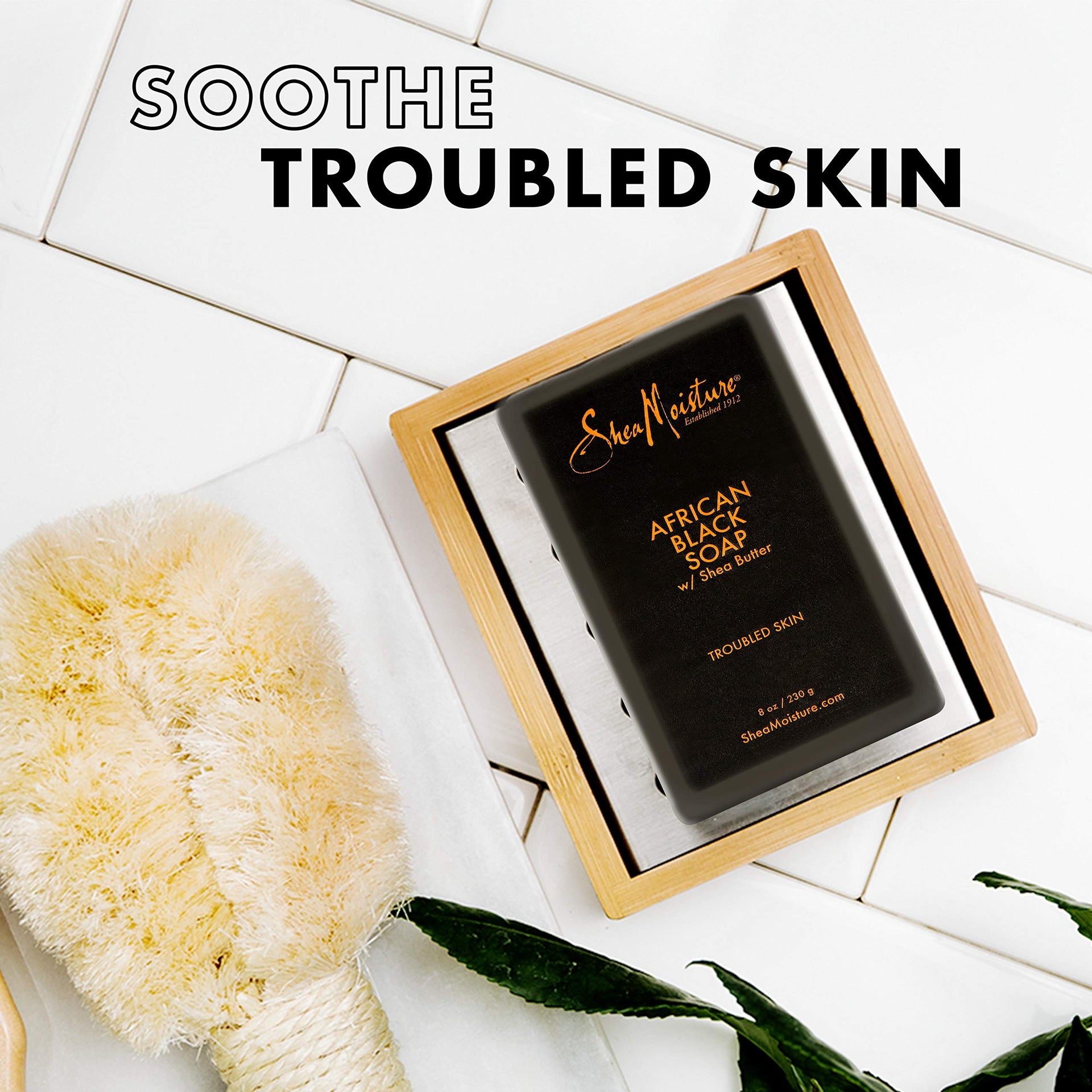 Details: This SheaMoisture African Black Soap Face & Body Bar is a facial cleanser that clarifies oily, blemish-prone skin. This facial cleanser, blended with Tamarind Extract, is a great exfoliating face wash. Our facial cleanser, blended with Tea Tree Oil, helps gently purifies and mattify oily skin. It's one of our best facial cleansers for oily skin and a face wash for blemished prone skin. Apply face wash to damp skin. Gently massage into the face and neck using circular motions. Rinse thoroughly. Follow up with African Black Soap Clarifying Toner. We are sustainably produced goodness. Skin care made with love for you and your body. SheaMoisture is pioneering fair trade through Community Commerce at home and abroad. This facial cleanser is formulated with no parabens, no phthalates, no mineral oil and no sulfates. It's been tested on our family for generations and never on animals. OUR STORY: SheaMoisture is the legacy of Sofi Tucker, a pioneering mother of four and an entrepreneur, who sold Shea Butter, African Black Soap and homemade beauty preparations in Sierra Leone in 1912. We honor her vision by continuing to formulate with Raw Shea Butter handcrafted by women in Africa. With every purchase you show support of our mission to reinvest back in our communities.