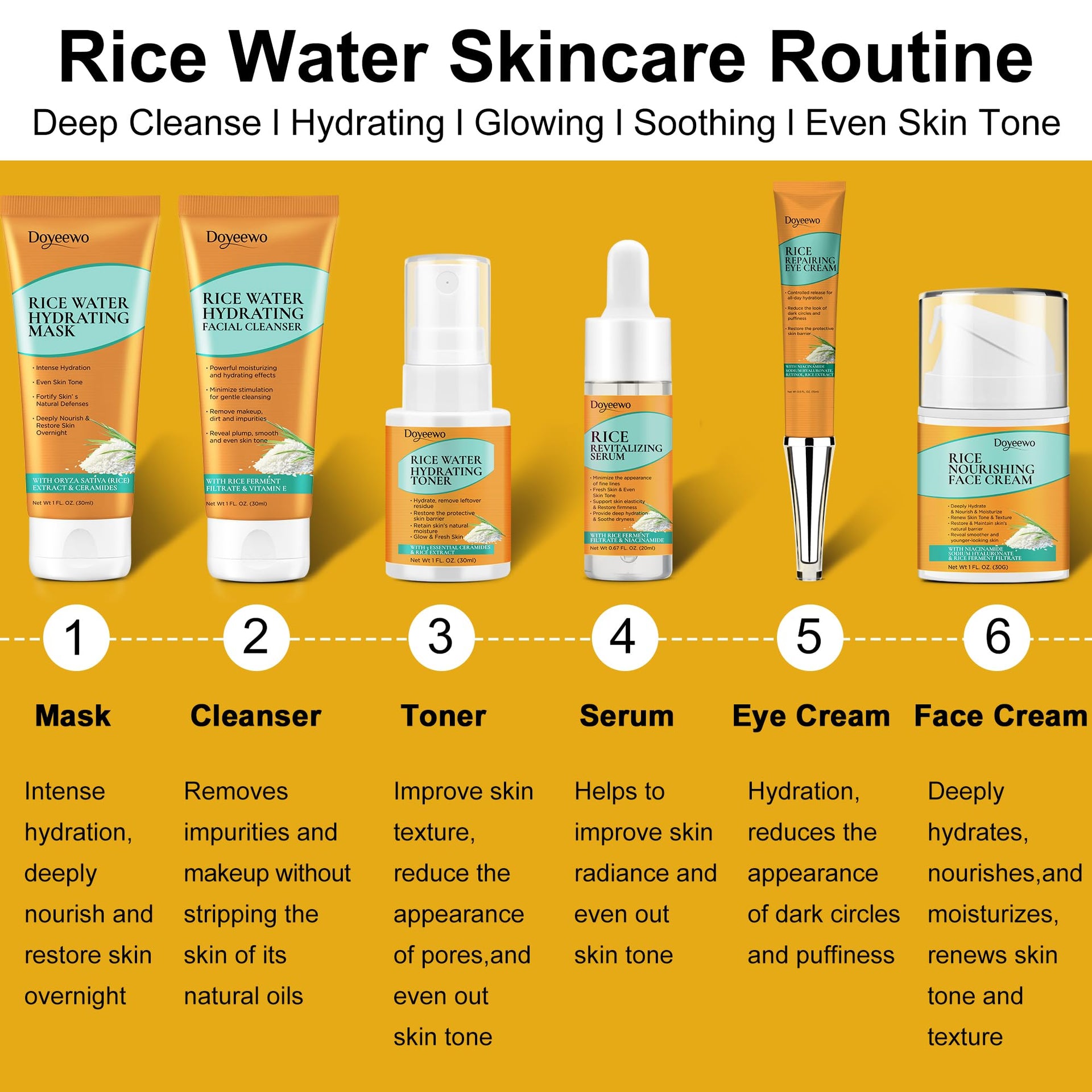 6Pcs Korean Glass Skin Care Set for Women & Teens – Rice Extract Facial Kit to Hydrate, Glow & Repair – Anti-Aging Routine Gift for Mom, Wife, Girls