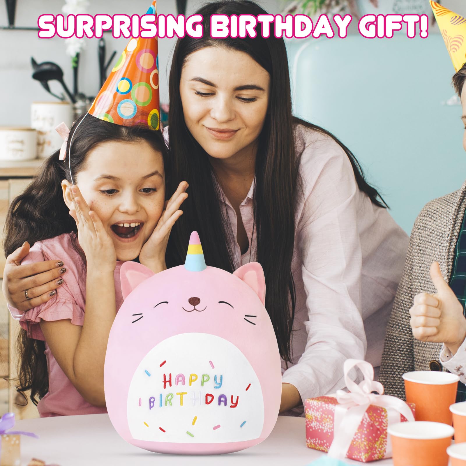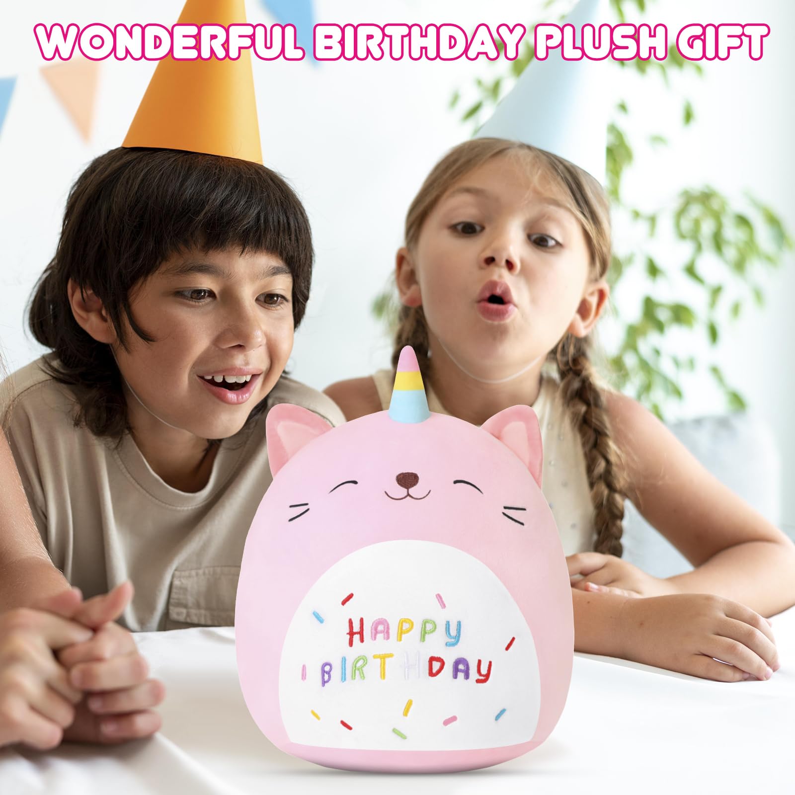 - 【Perfect Birthday Gift】This colorful "Happy Birthday" sign pink caticorn plush can decorate a birthday party or for family, children, friends, etc. A kawaii shape will bring them good luck and happiness.