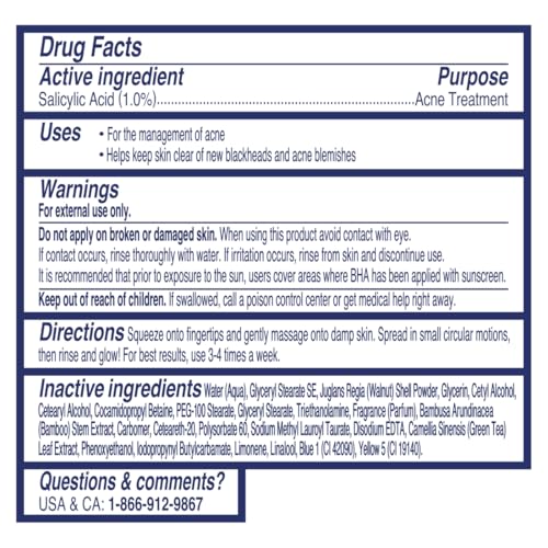 - NATURAL EXFOLIANTS: This face scrub is made with 100% natural exfoliants (walnut shell powder and bamboo powder) and salicylic acid to buff away dead skin and unclog pores for clear, radiant skin.