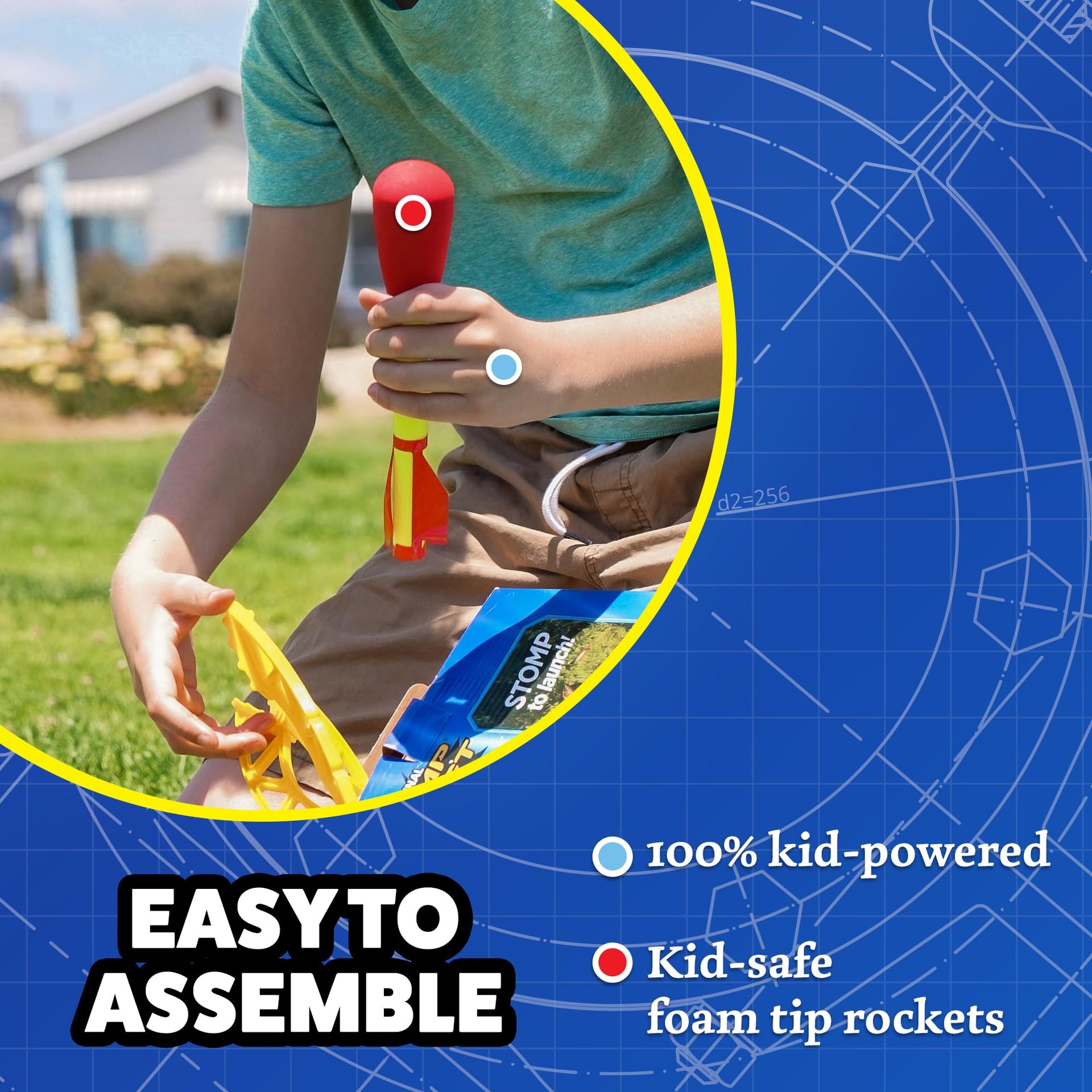 - EASY TO ASSEMBLE: Ultra rockets are 100% kid powered – that means there are no batteries required and no cords or plugs to fumble with. Stomp Rockets are made of strong, kid-safe plastic and foam tip.