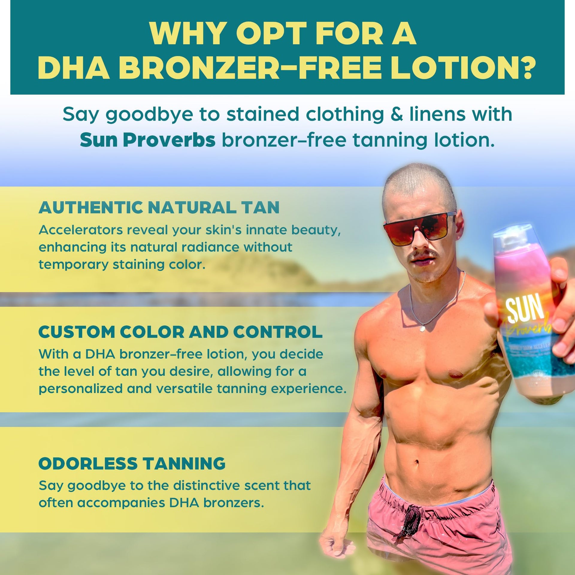 - INDOOR or OUTDOOR: We Say Both. - Who's got time to lounge around all day for that perfect tan? Not you! Whether you're a sun-worshipper or an indoor tanning aficionado, our Sun Proverbs is the ultimate tanning sidekick. It's like having a fast-pass to bronzeville. DHA Bronzer-free, and it'll have you looking like you just came back from an exotic vacay, without the long flight and touristy sunburn.