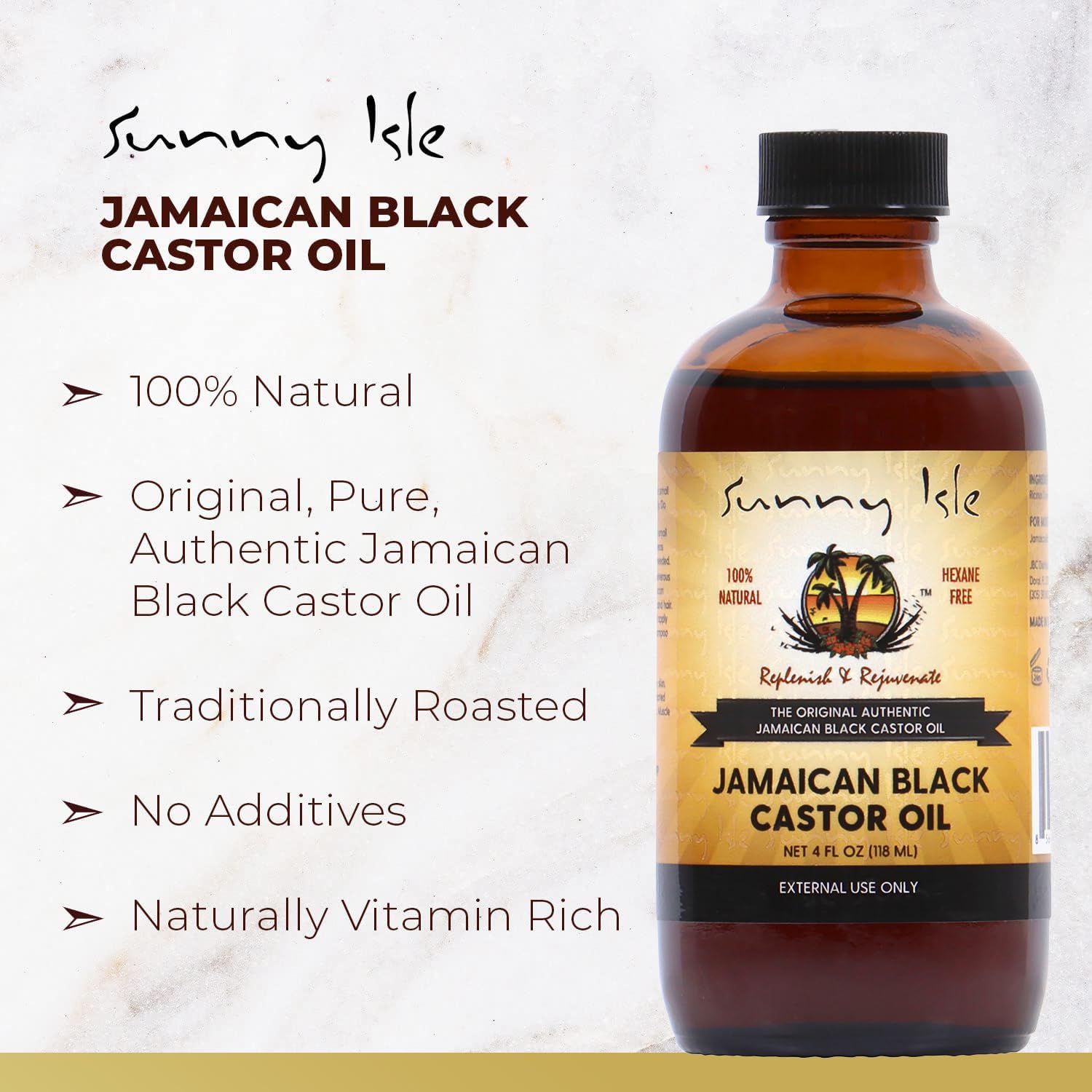 Sunny Isle Jamaican Black Castor Oil 4oz | 100% Natural for Hair, Scalp and Skin Care