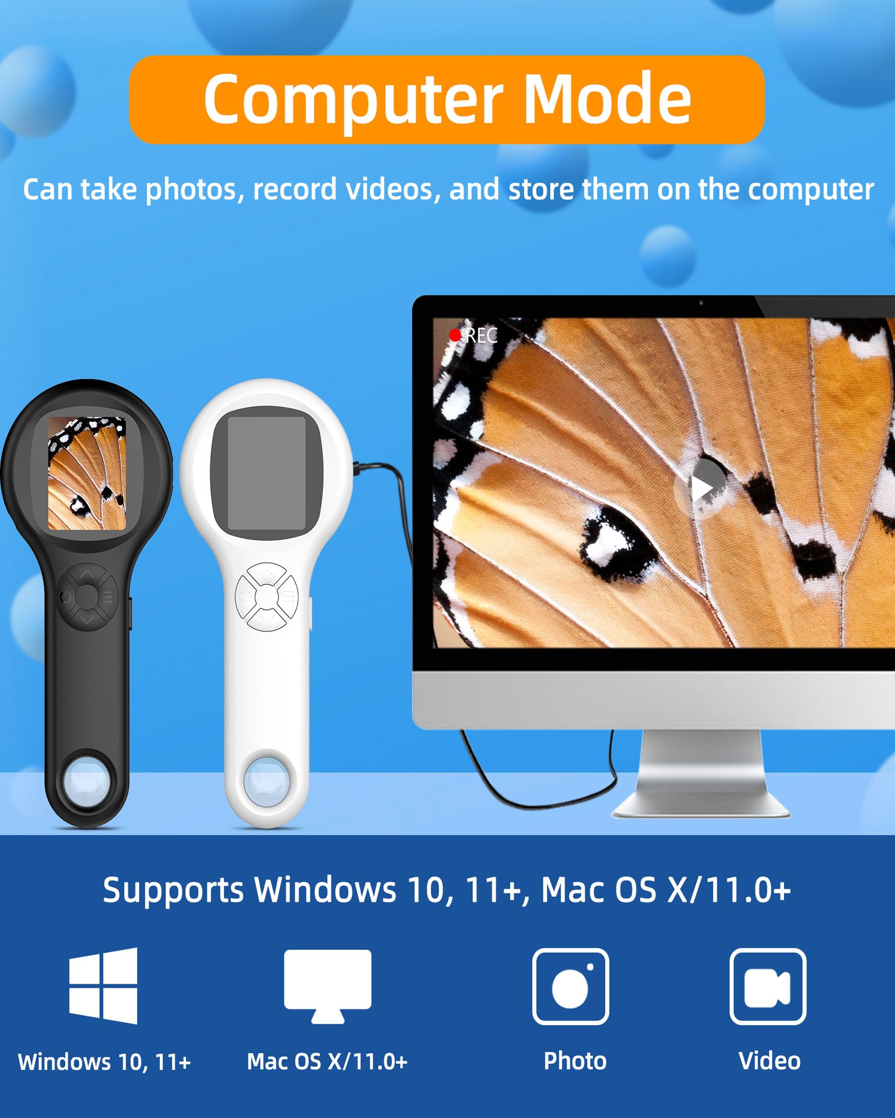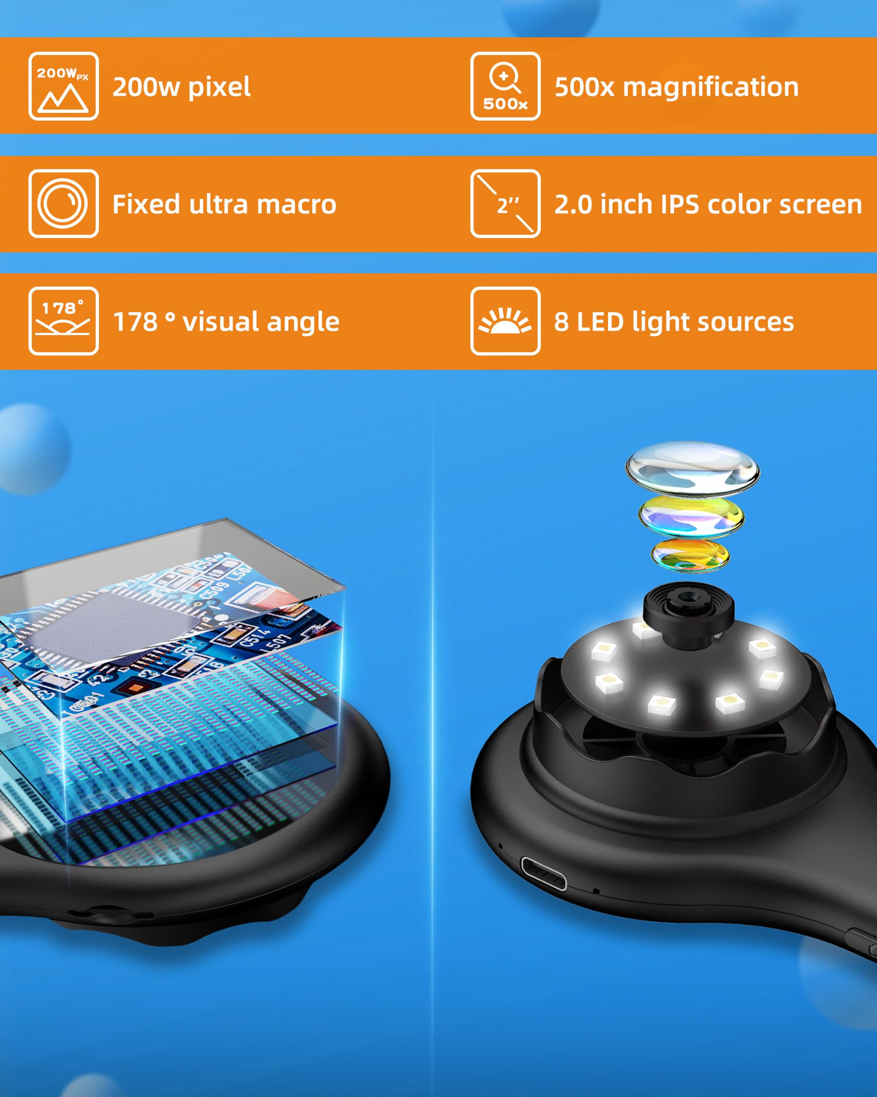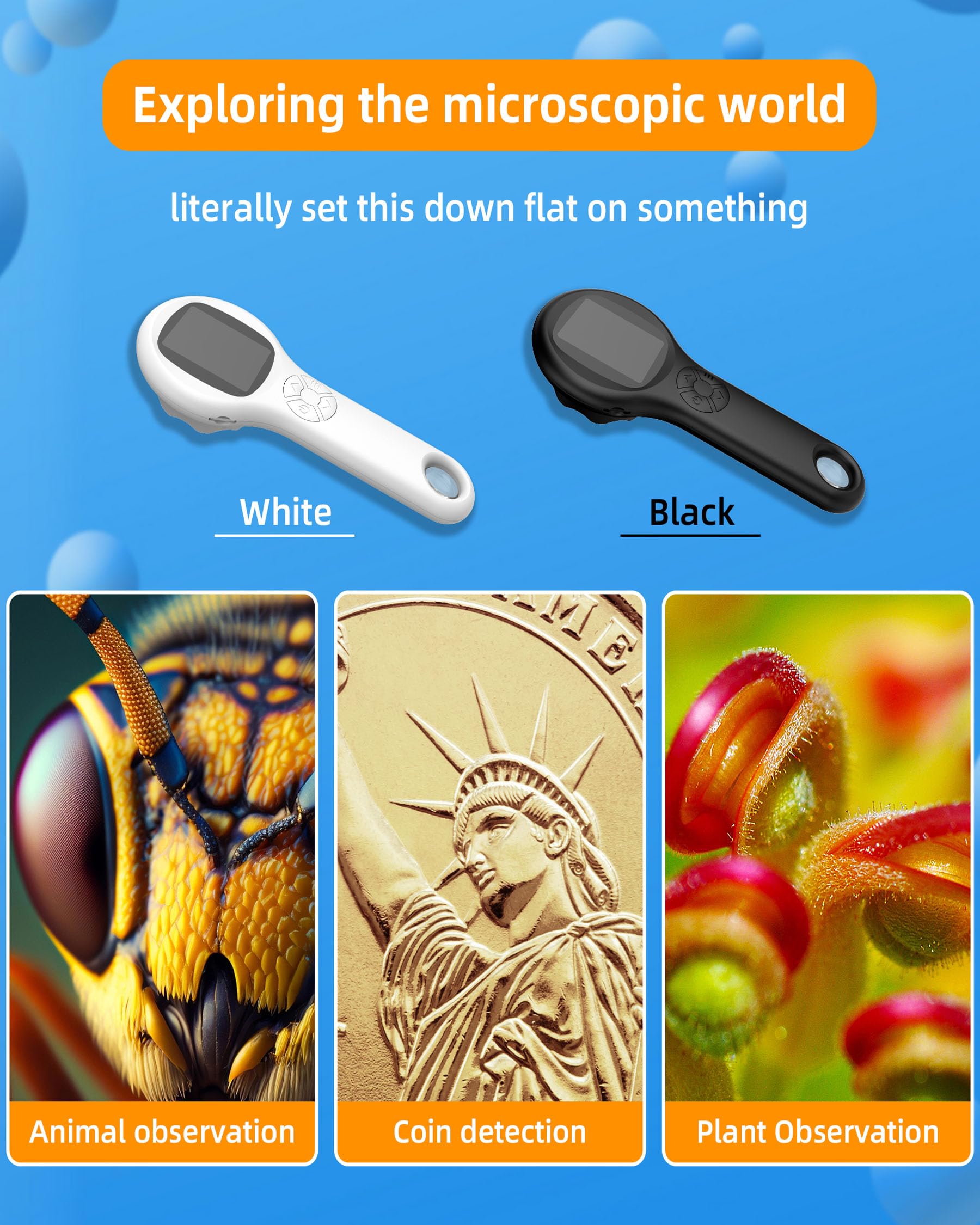 T TAKMLY Mini Pocket Digital Microscope, Macro Fixed Focus Magnifying Glass, Portable Handheld USB Digital Microscope 500x Magnification, 4X Zoom