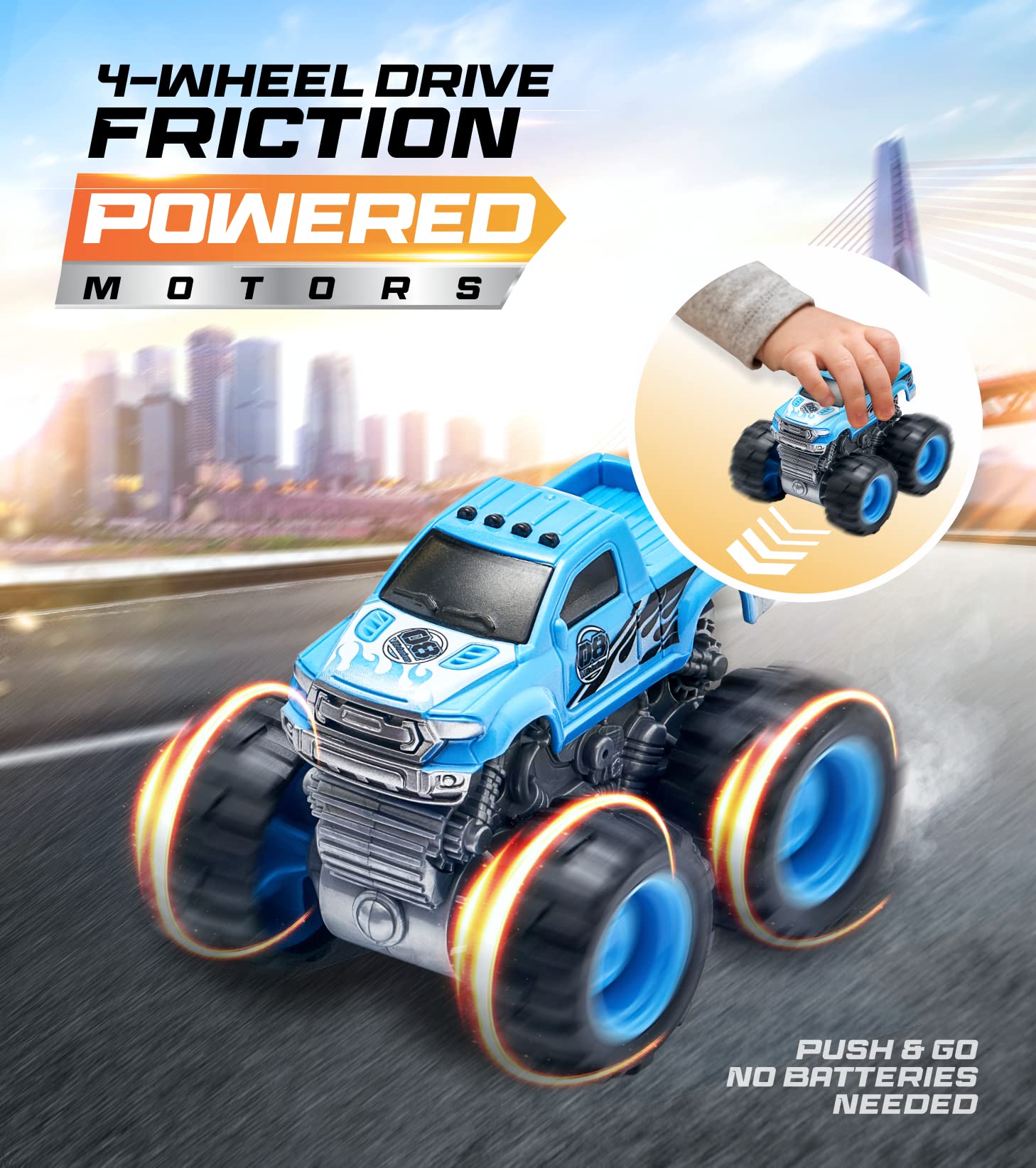 Team Power Monster Trucks 6-Pack – Friction Powered 4WD Toy Cars for Boys & Girls, Giant Wheels, 360° Stunts, Ages 3+ [Amazon Exclusive]