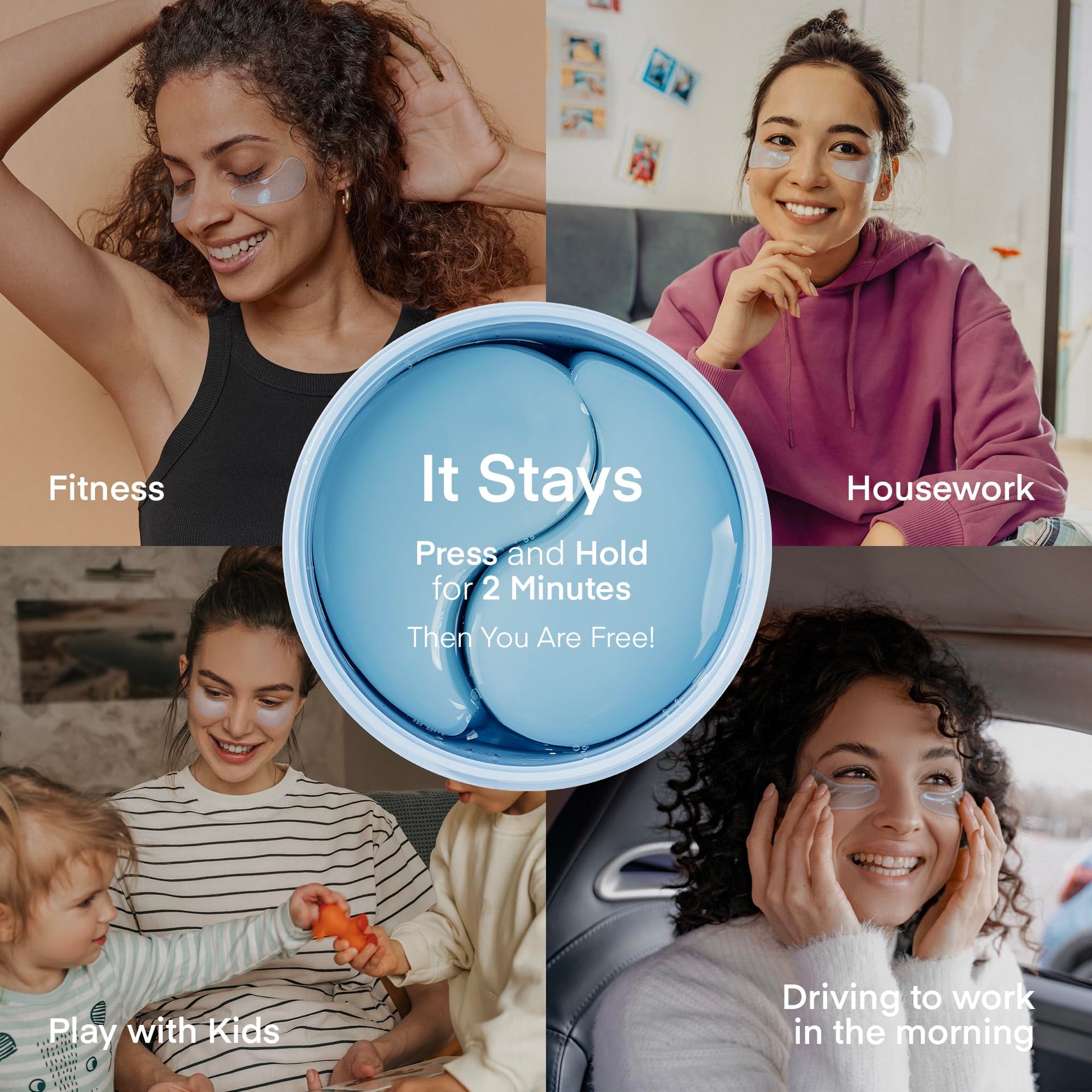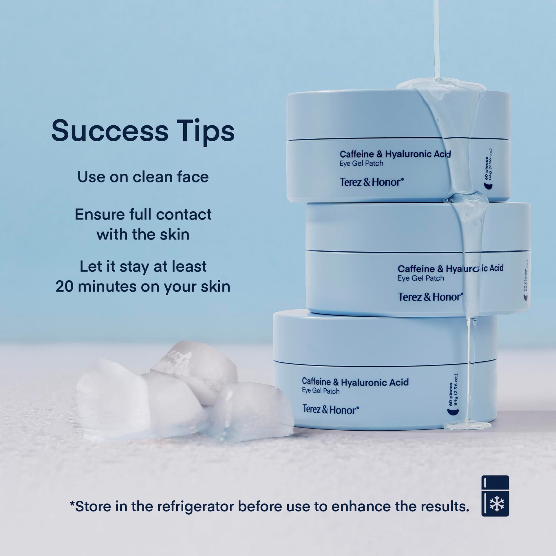 TEREZ & HONOR Korean Hydrogel Under Eye Patches - 60 Masks with Caffeine, Hyaluronic Acid & Niacinamide for Dark Circles, Puffiness & Wrinkles