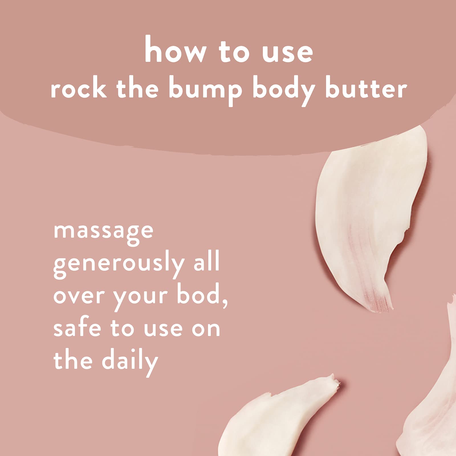 - GLOW AS YOU GROW: Get up to 24 hour moisture with our Rock the Bump Body Butter, and add a few drops of sunshine to your bump care routine with our plant based Glow On Body Oil
