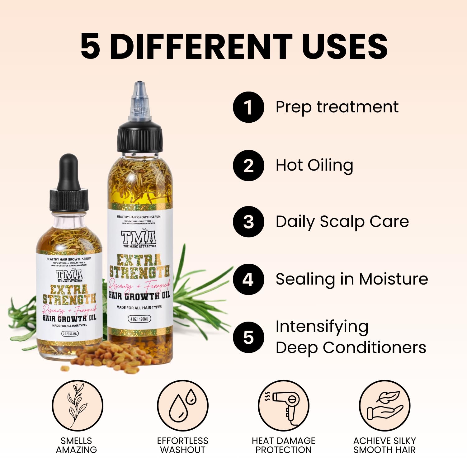 - Strengthens & Regrows Hair Naturally - Formulated with castor, rosemary, and fenugreek oils to nourish follicles, stimulate growth, and reduce thinning. Perfect for those experiencing breakage, shedding, or slow growth.