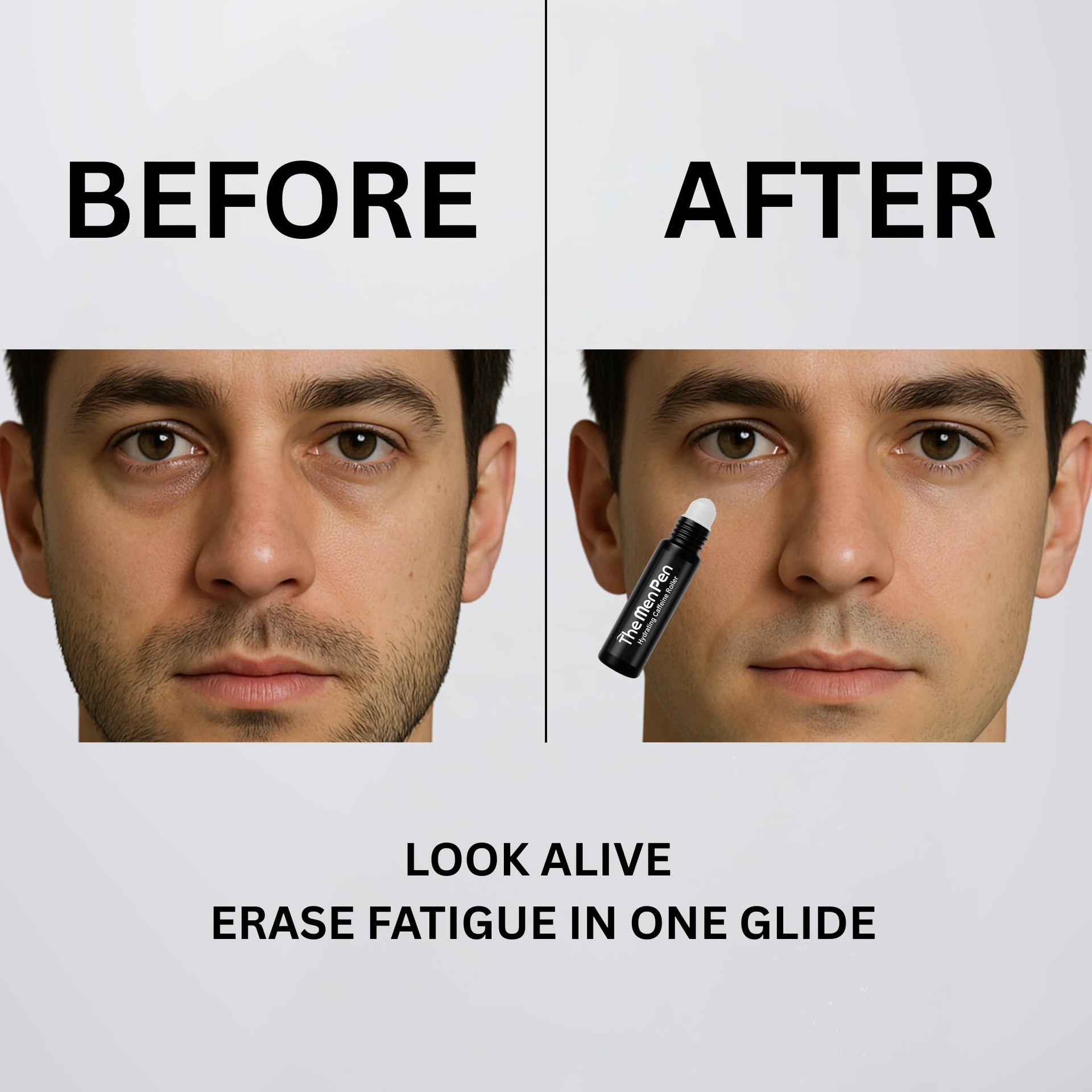 The Men Pen Refresher Kit – Beard, Hair & Brow Filler + Caffeine Eye Roller & Razor 4-Pack | Waterproof, Sweat-Proof, Long-Lasting – Dark Brown