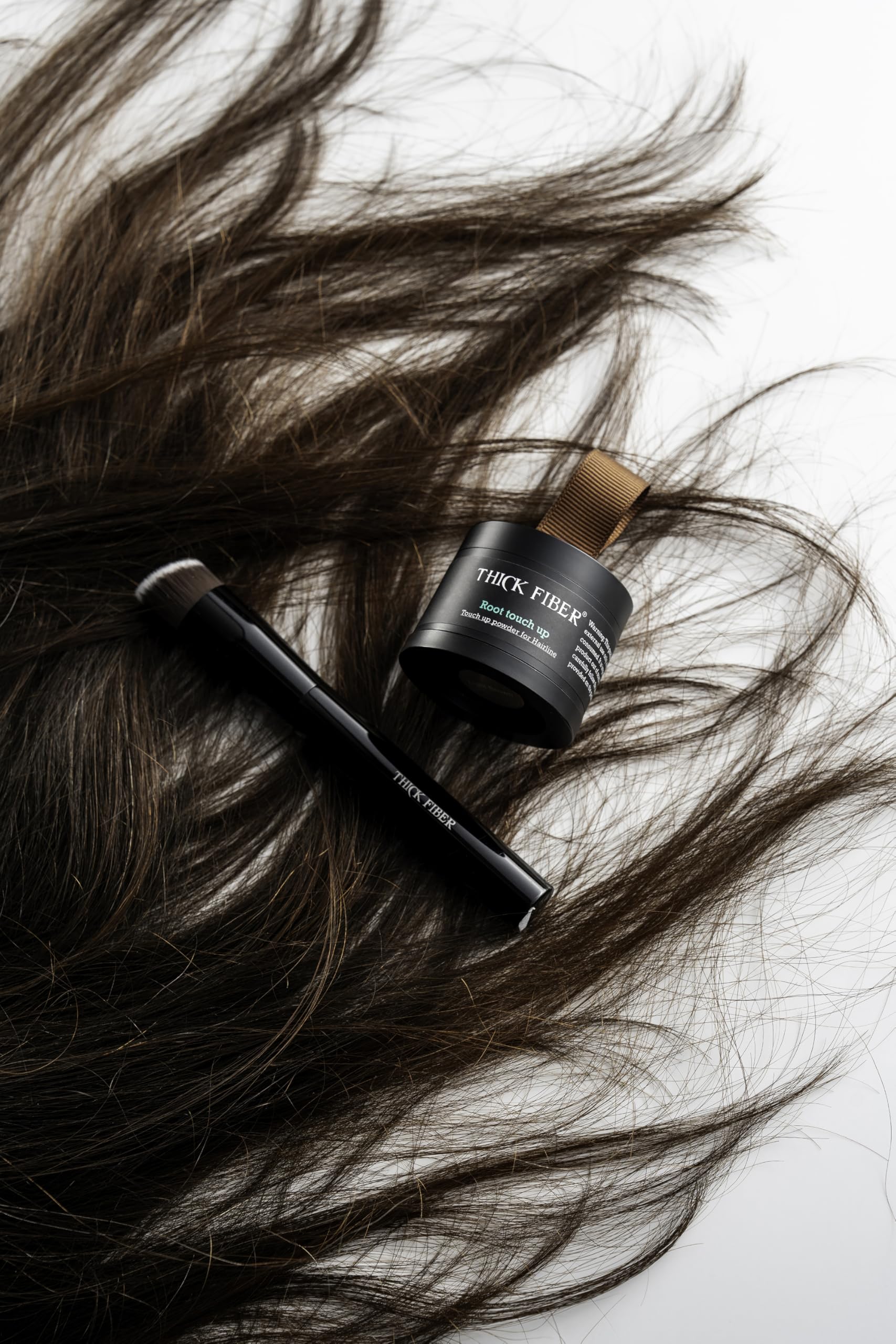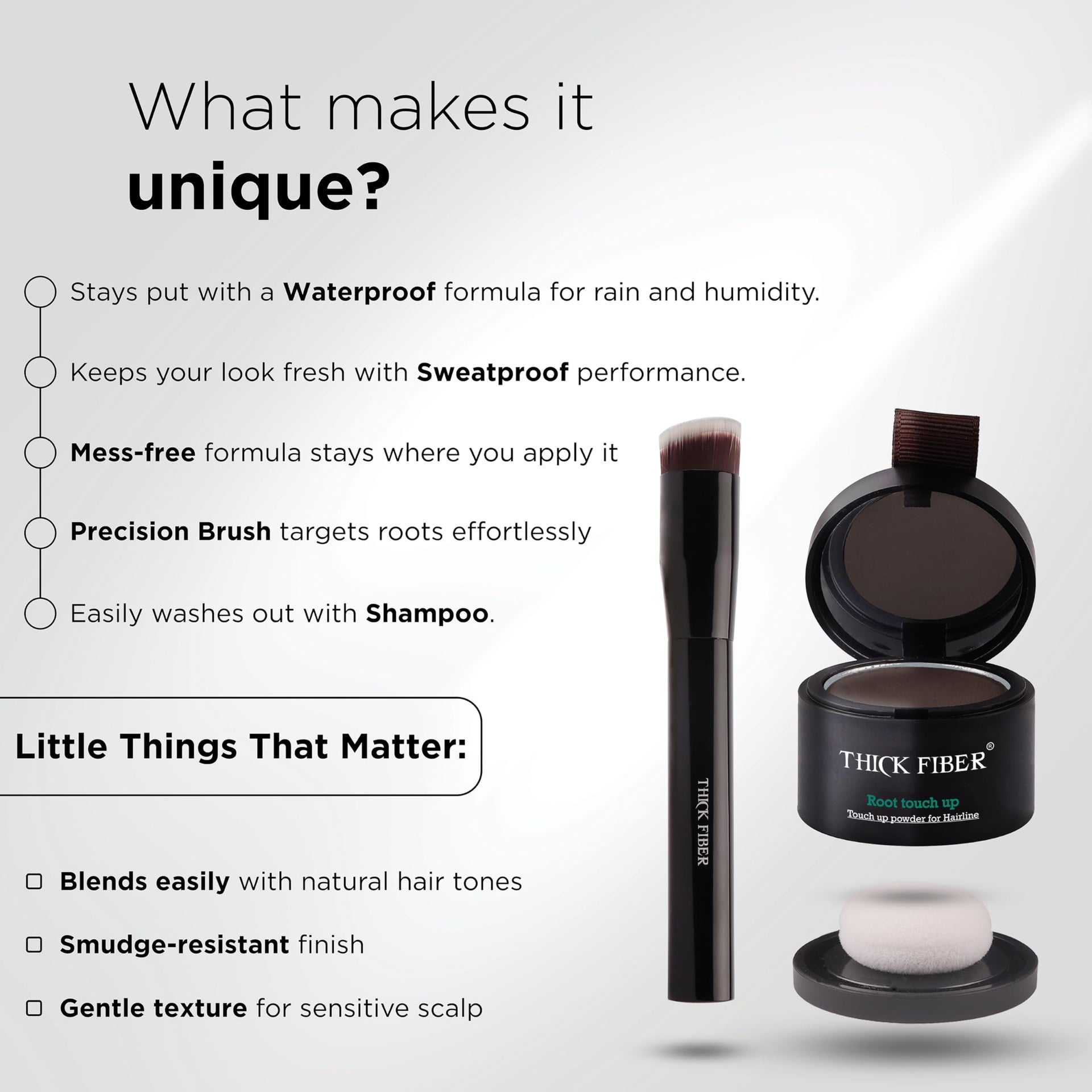 THICK FIBER Root Touch Up Powder - Water & Sweat Resistant Hair Loss Concealer Set for Thinning Hair Women, Includes Brush (Dark Brown)