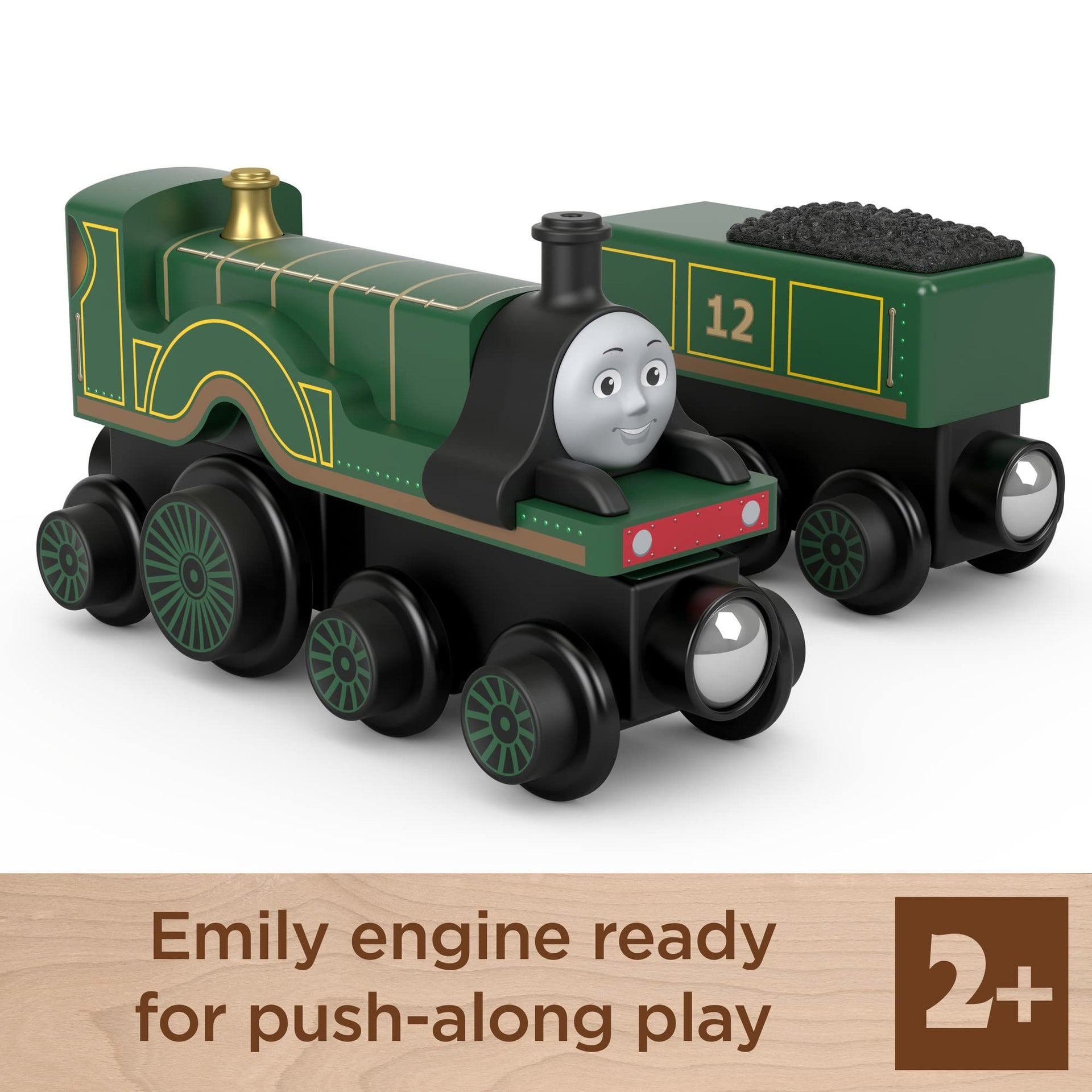 Thomas & Friends Wooden Railway, Emily Engine and Coal Car, push-along train made from sustainably sourced wood for kids 2 years and up