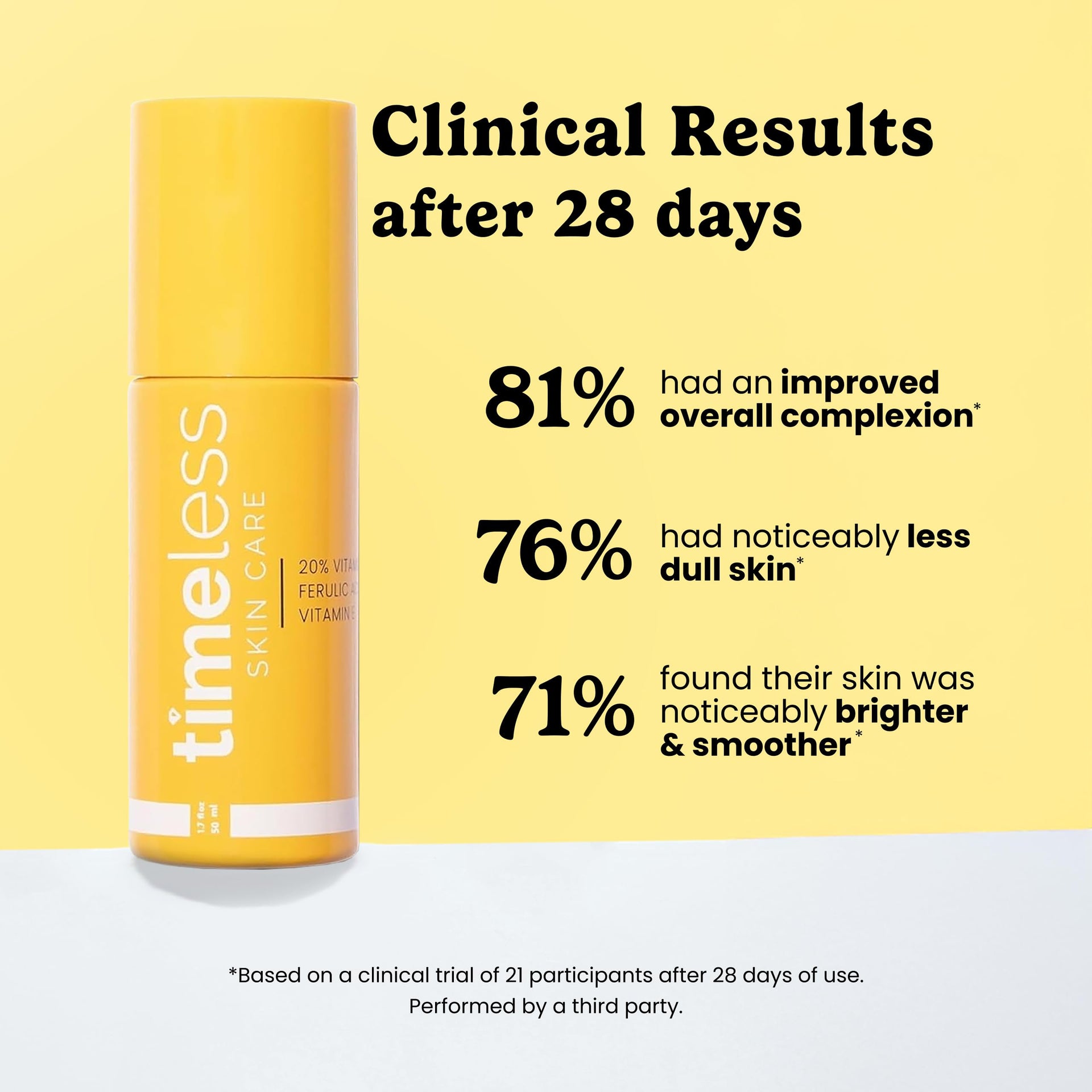 Timeless Skin Care Vitamin C Serum with Vitamin E & Ferulic Acid - Brightening Serum - for Oily & Dry Skin - Fragrance-Free - 1.7 oz
