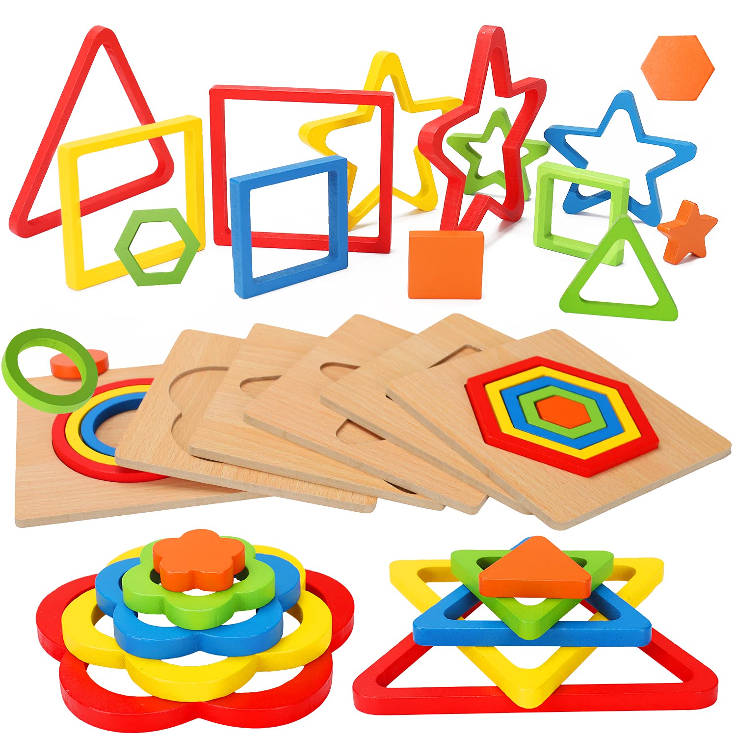 Montessori Toddler Wooden Shape Sorting Puzzle – Sensory & Educational Toy for 1-3 Year Olds, Autism, Preschool Learning, Easter Gift