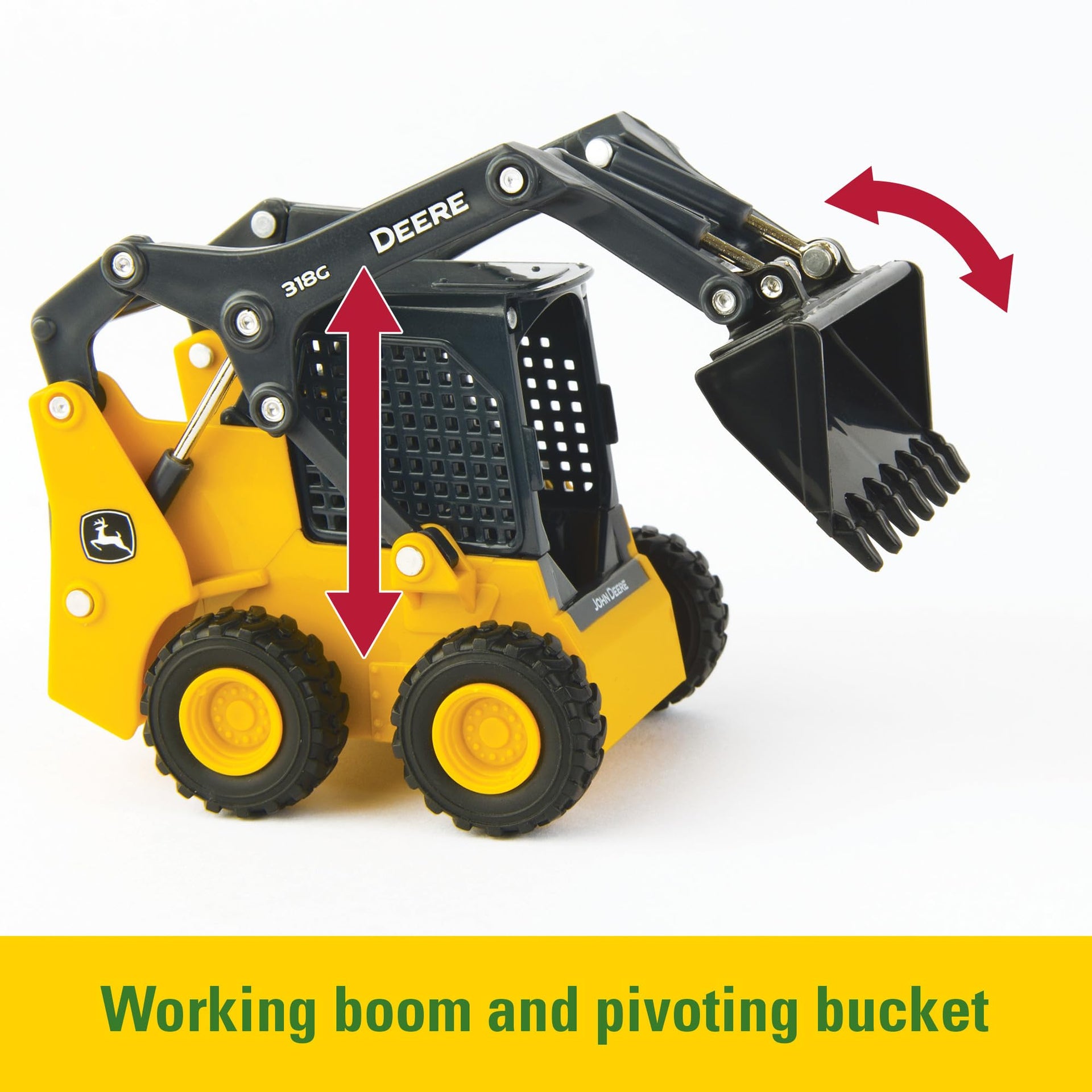TOMY John Deere Round Bale Haying Set 1:32 Scale with 7R Tractor, 569 Round Baler & 381G Skid Steer Toy Farm Construction Playset Ages 3+