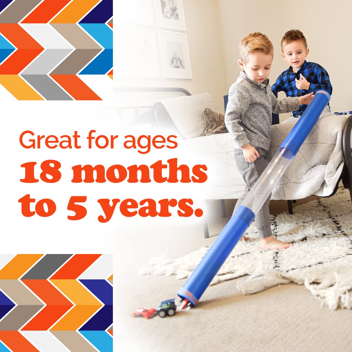 - Set Up & Race: Quickly pop together for hours of car and ball racing action. Connects three 2 3/4 inch diameter tubes together in a flash for fun just about anywhere!
